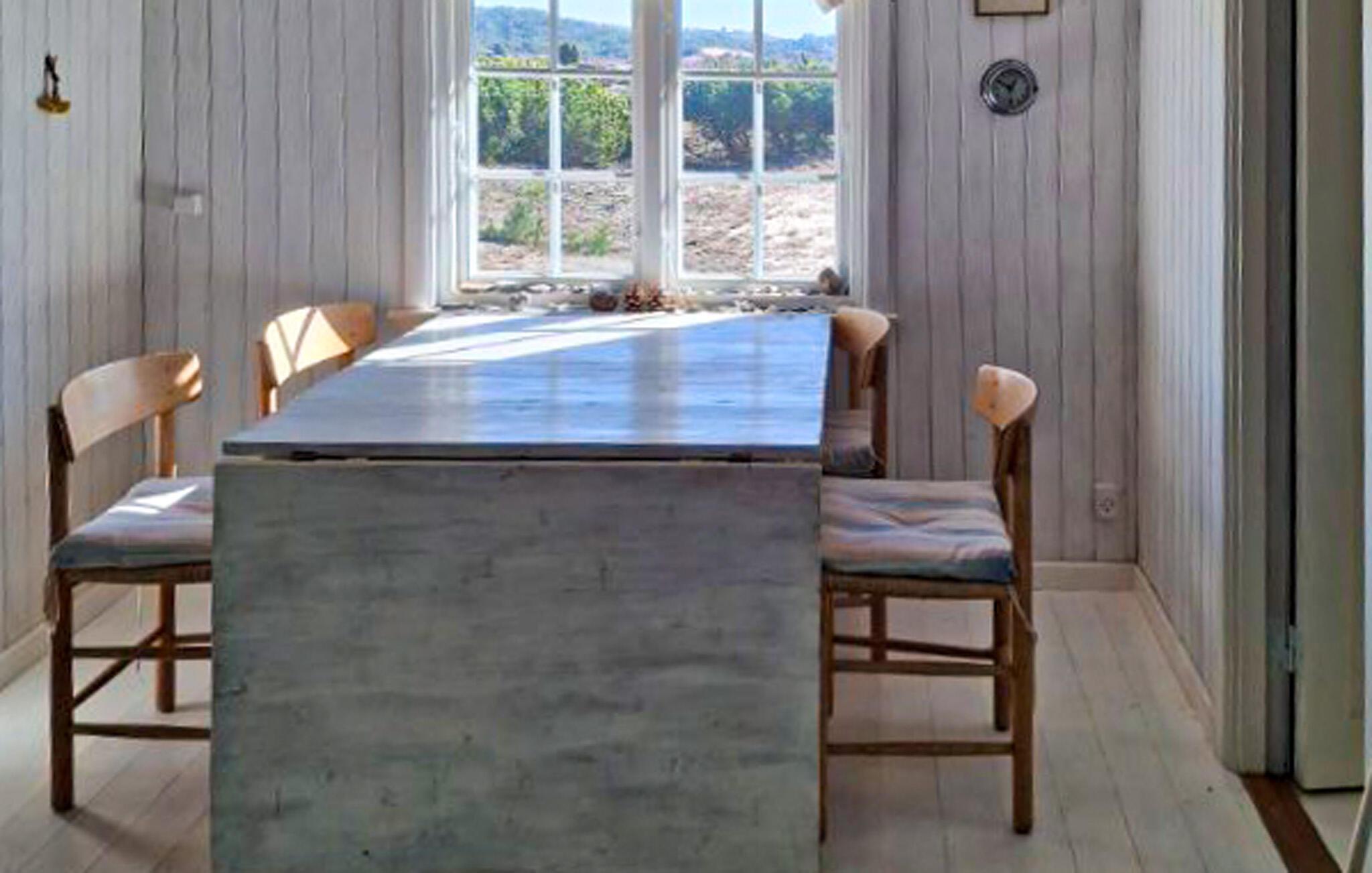Dette feriehus tilbyder de bedste betingelser for et roligt og afslappende ophold på den bilfri ø Anholt. I kommer til at bo i et unikt klitlandskab og kan se frem til nogle fantastiske dage i naturskønne rammer. Gør det behageligt i den hyggelige, enkelt møblerede opholdsstue. Sofaerne lægger op til at læse eller slappe af. Nyd den originale atmosfære med synlige træbjælker og omhyggeligt udvalgte detaljer i skandinavisk stil. lav maden sammen i det åbne køkken med et nostalgisk præg og åbne hylder. Tag plads ved spisebordet og lad blikket vandre over det bakkede landskab.
