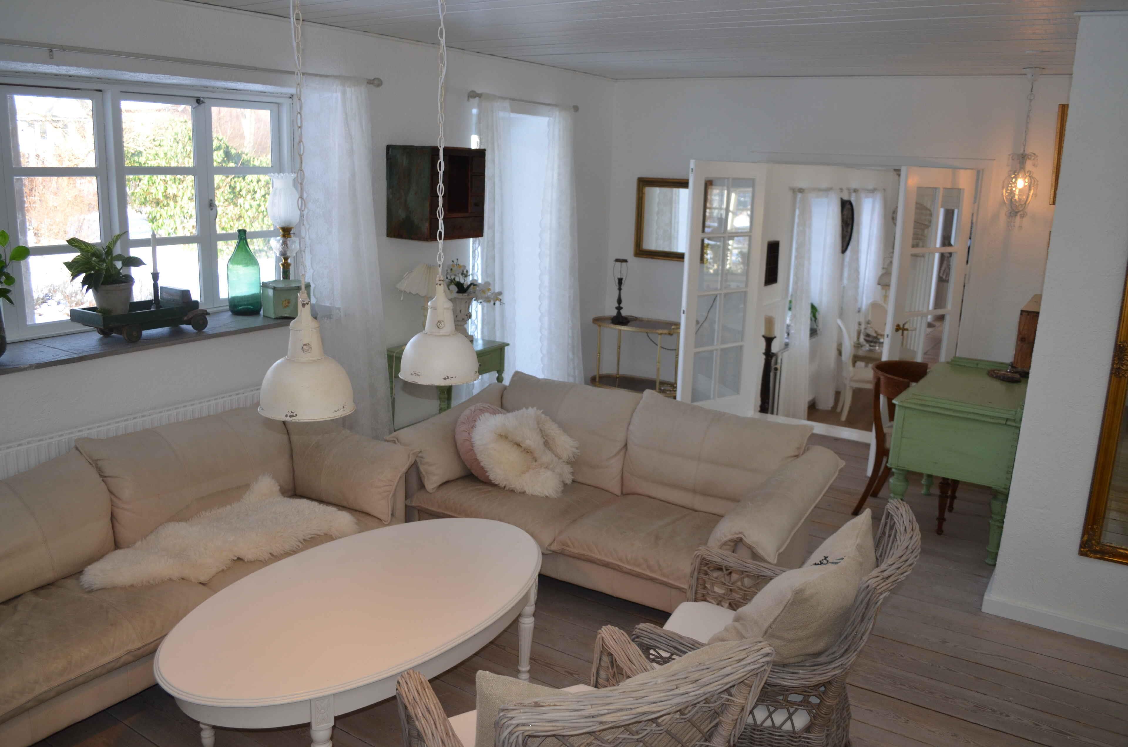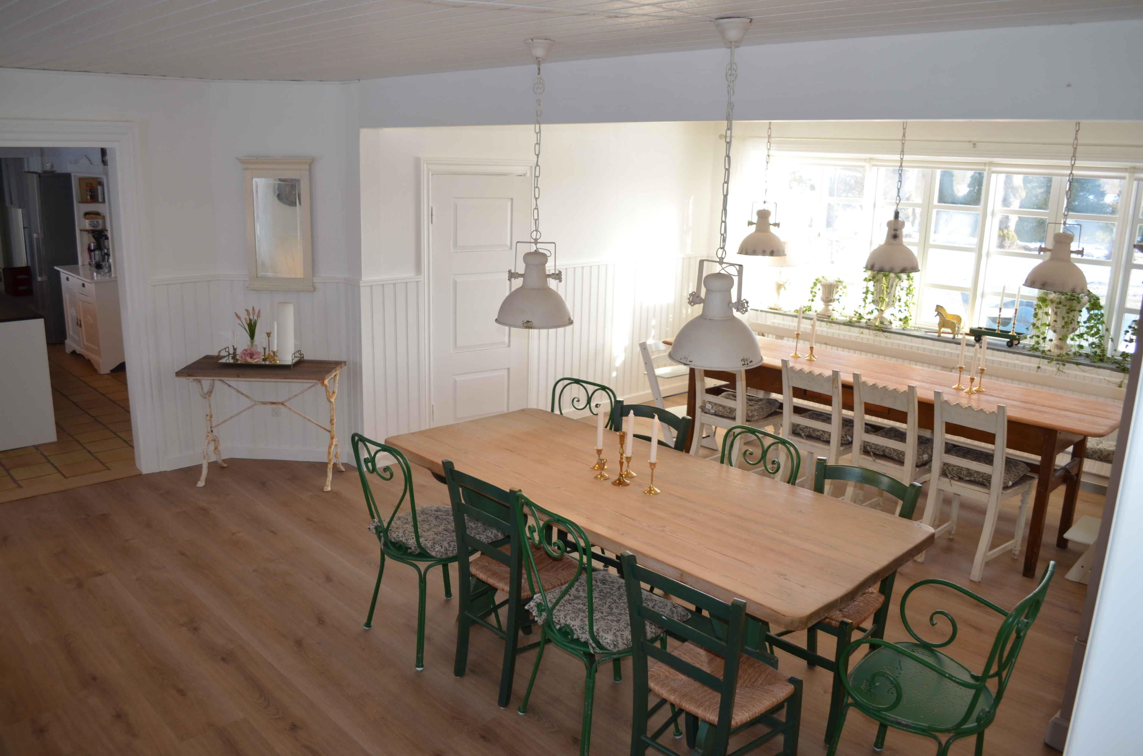 stor feriebolig, indrettet i badehotelstil overalt lige fra indretning til porcelæn, varmepumpe, værelser i hver sit værelse, grovkøkken ved siden af det almindelige køkken, udespa, shelter, stor terrasse 125 m2, bær- og urtehave som må benyttes