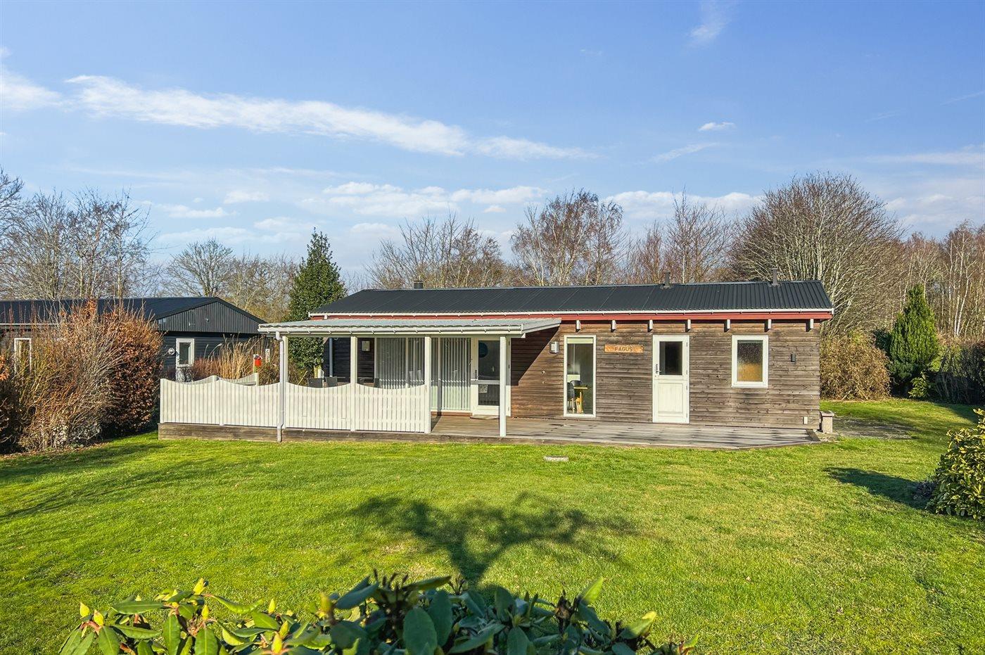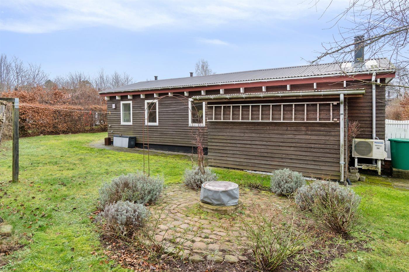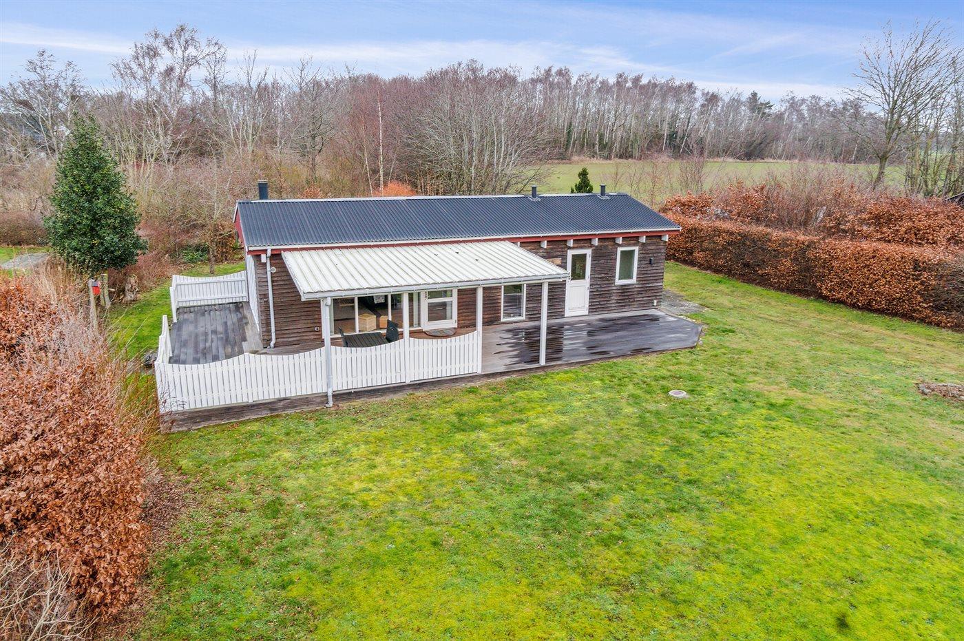 Husets ydervægge er beklædt med træværk, så huset har en helt speciel karakter. Der findes åben og fin, overdækket terrasse, der indbyder til timer i det fri, hvor du kan nyde solen, en god bog er eller udsigten til de nære omgivelser.