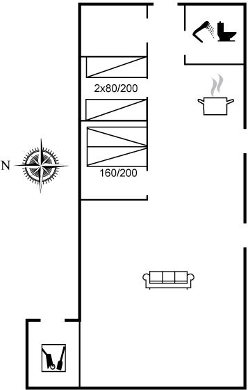 Der er i alt 2 soveværelser. Sovepladserne fordeler sig på: 2 sovepladser i dobbeltseng. 2 sovepladser i enkeltsenge.