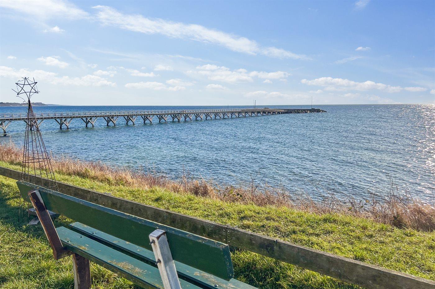 Dette skønne sommerhus kendetegnes af sin lyse og venlige indretning og ligger i det gamle fiskerleje Arnager i et sommerhusområde ud til sandstrand, klintekyster og den fabelagtige ø-havn. Her findes en af Skandinaviens længste broer, som fører ud til den lille havn, hvor der er aktivitet og liv omkring den nyetablerede sauna.