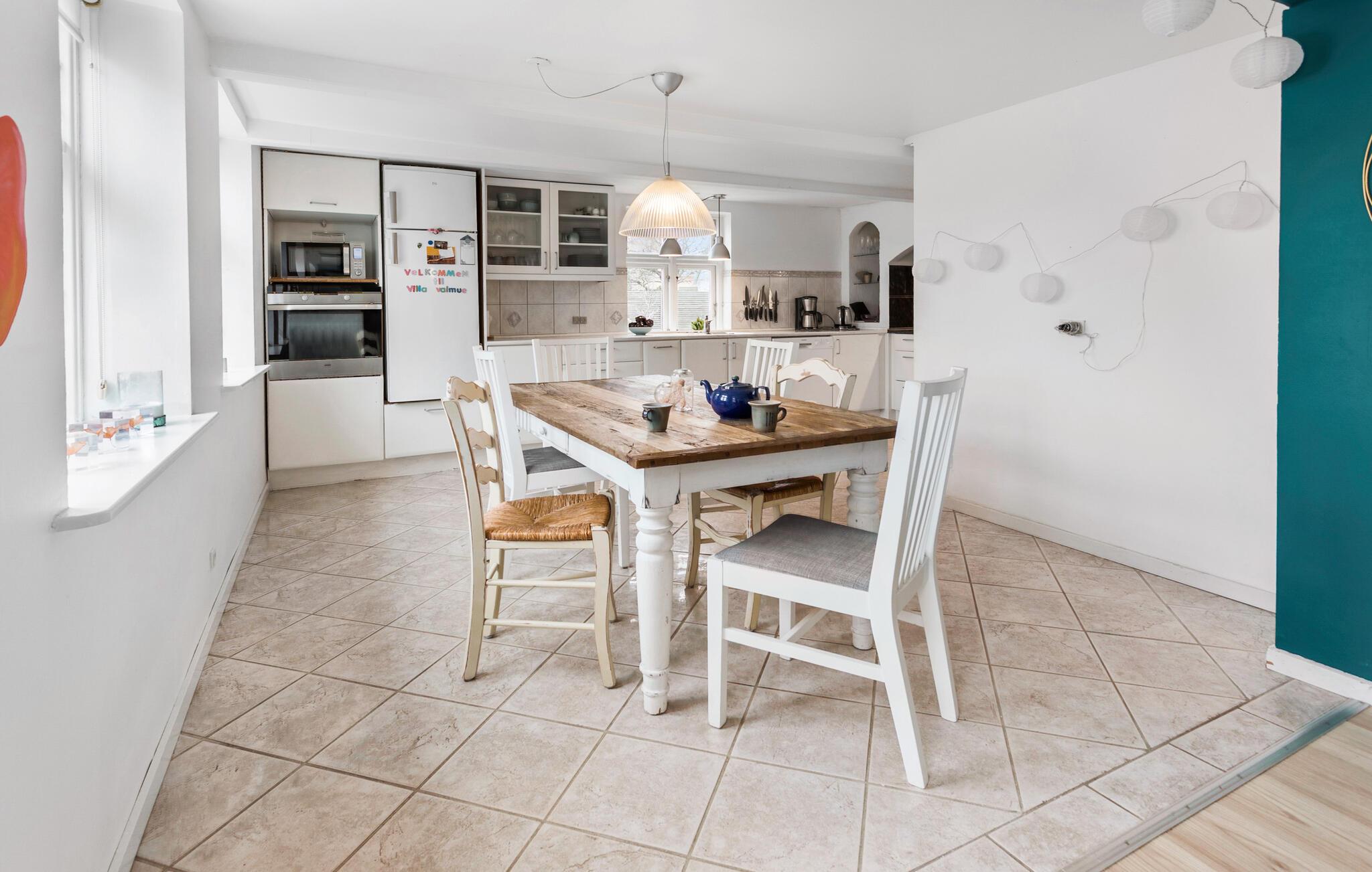 Nyd jeres ophold i dette charmerende feriehus i Arnager, der imponerer med sin indbydende atmosfære og kærligt indrettede interiør. Start dagen med morgenmad i det lyse spiseområde, hvor det rustikke træbord lægger op til hyggelige måltider. Det rummelige og veludstyrede køkken gør madlavningen til en fornøjelse. Tilbered jeres livretter her og nyd den hyggelige stemning. Stuen med sin farverige og stilfulde indretning giver et særligt præg. Læn jer tilbage på sofaen eller i gyngestolen, slap af med en film, eller fordyb jer i en god bog.