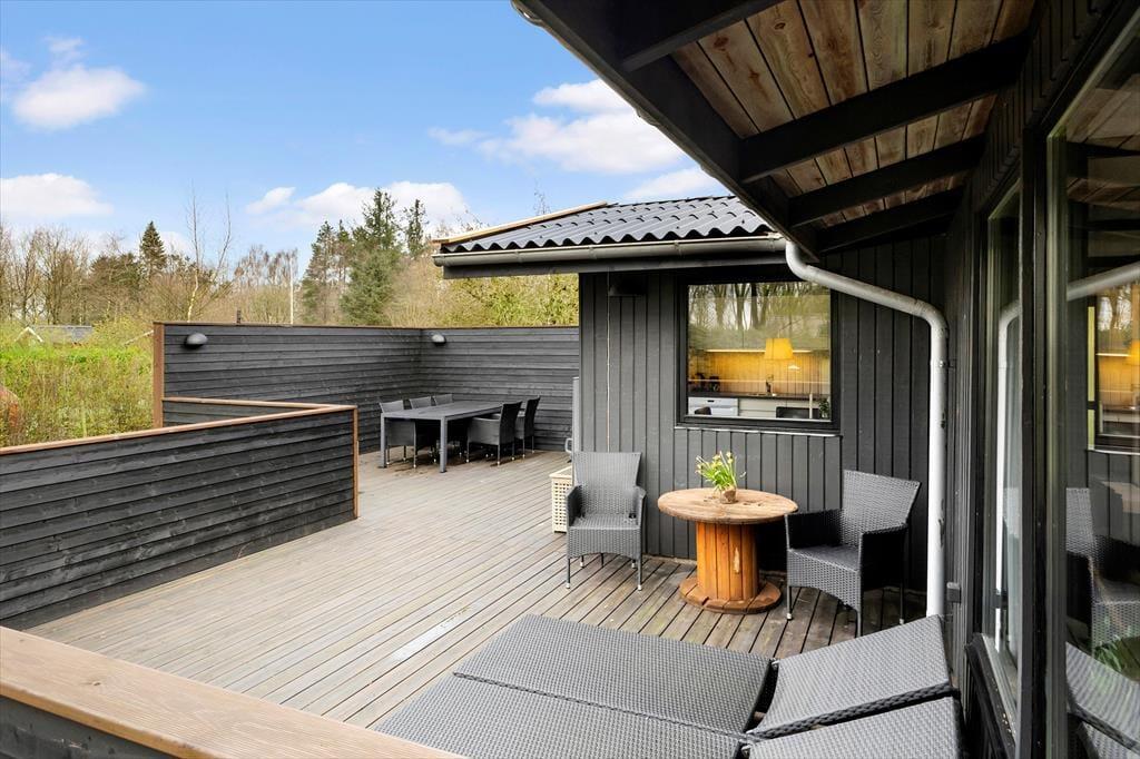 Efter en god nats søvn på soveværelserne vil du og familien måske starte dagen i det fri, hvis vejret indbyder til morgenmad på terrassen og efterfølgende leg på græsplænen. Der er for øvrigt også en bruser udenfor, så selv morgenbadet kan foregå under åben himmel – og senere på dagen eller om aftenen kan I forkæle jer selv med wellness, for ved den overdækkede sydterrasse ligger en sauna, og på østsiden af huset finder du et lækkert vildmarksbad. En tilbagelænet stund i en god havestol kan sikkert også friste, og hvis I vil have flere aktivitetsmuligheder, er der masser at give sig til i Arrild Ferieby.