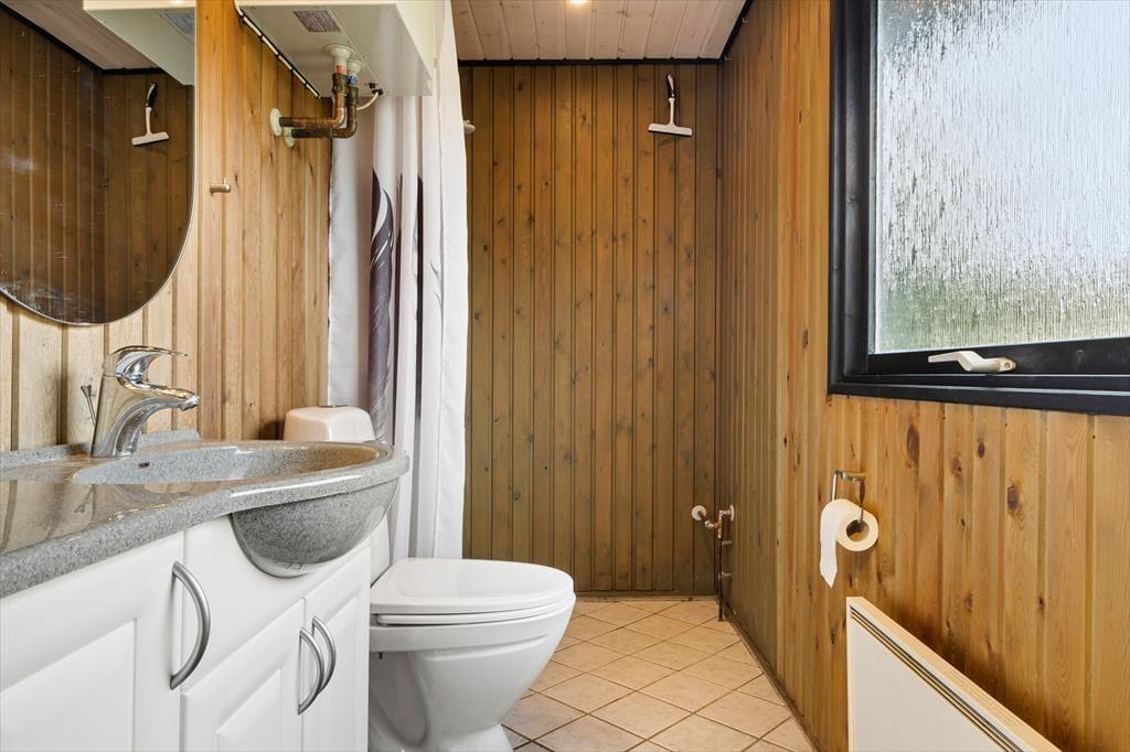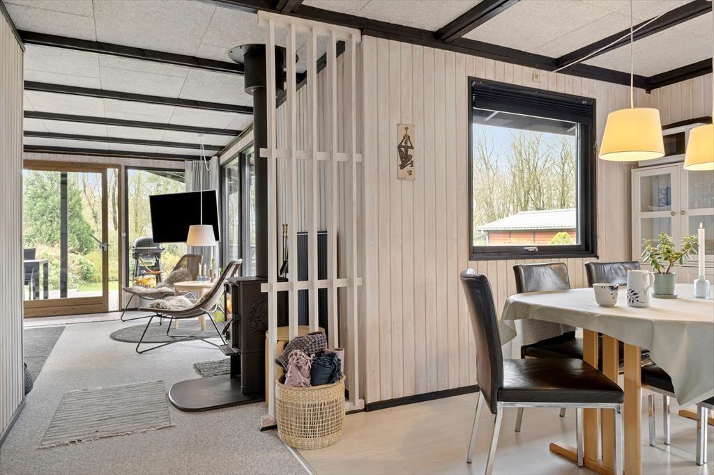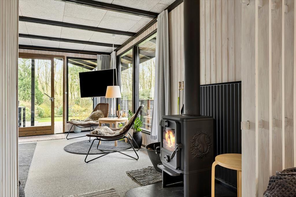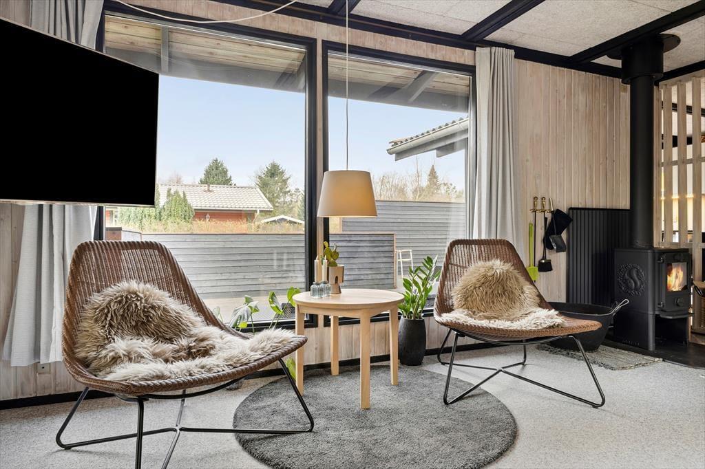 Med blandt andet en fiskesø, svømmehal og minigolf er der meget at hygge sig med i feriebyen, men det er nu også tillokkende bare at blive hjemme i sommerhuset for at nyde dagene i helt roligt tempo. Huset er blevet renoveret i 2023, og resultatet er særdeles vellykket, så du kan slappe af i velindrettede og hyggelige omgivelser. Spisekøkkenet og stuen ligger i åben forbindelse, og centralt i opholdsafdelingen står en brændeovn – den får du måske gavn af, hvis temperaturen falder om aftenen, og du har planer om at slænge dig på sofaen med en spændende bog eller en film på fladskærms-tv’et.