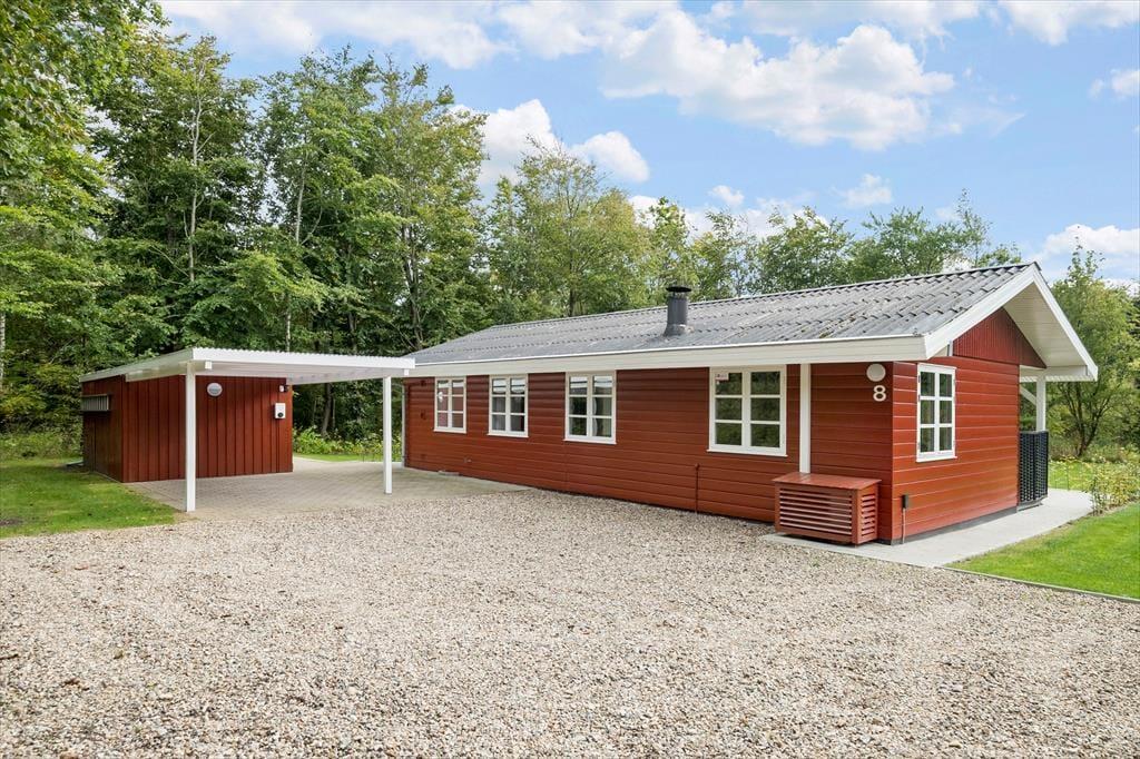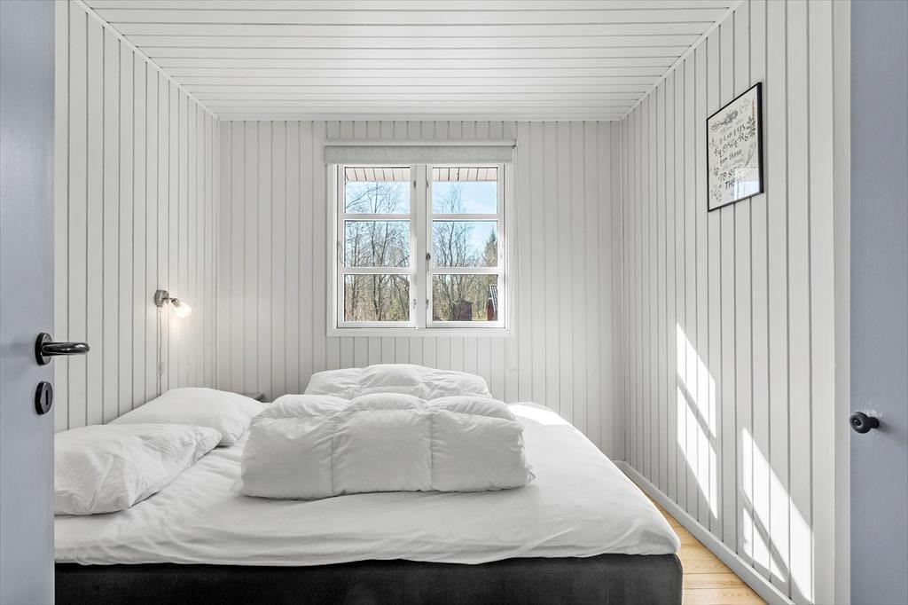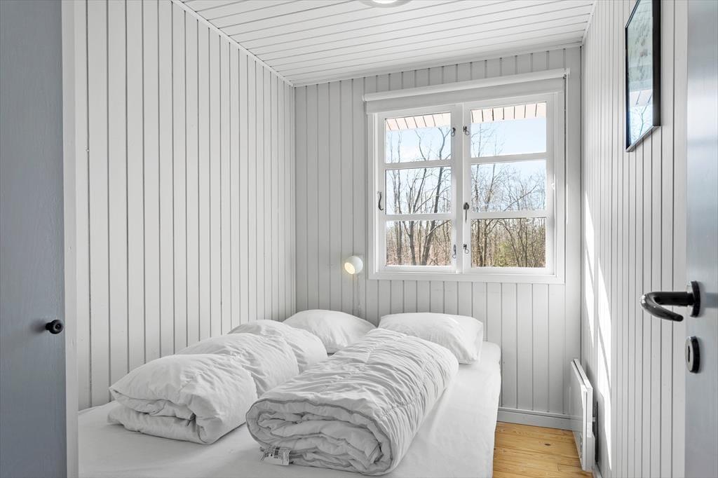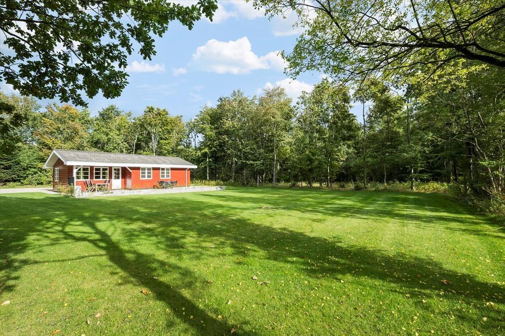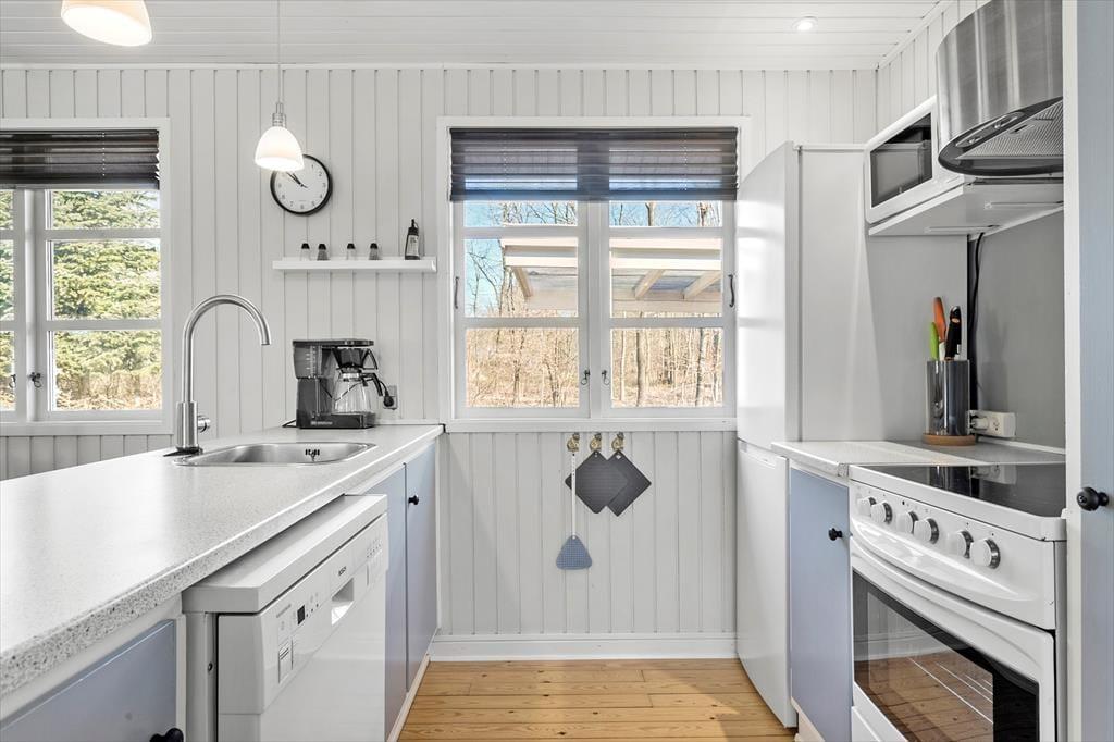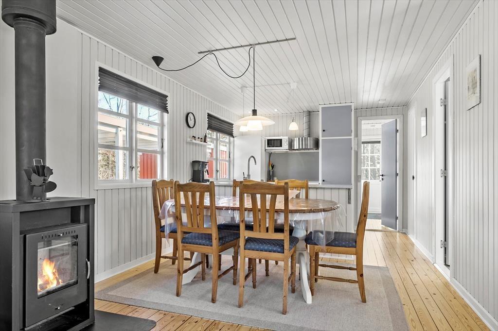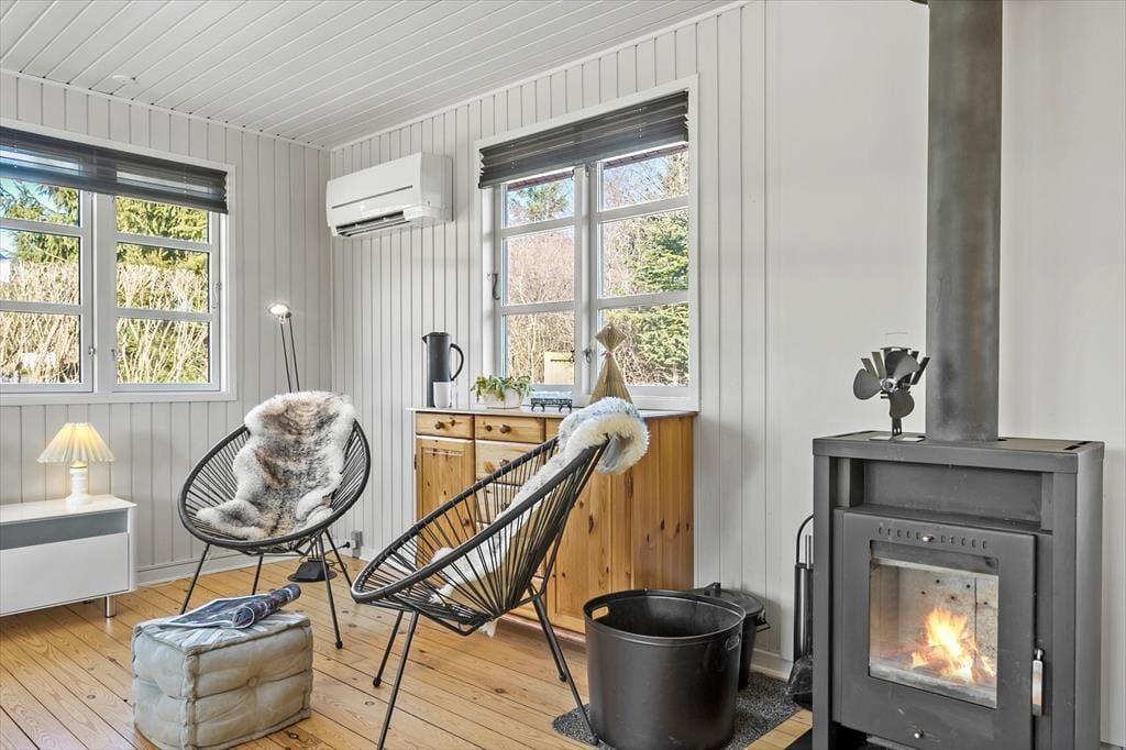 Med sin røde træfacade og hvide vinduesrammer passer sommerhuset perfekt ind i de flotte, grønne omgivelser. Også inden døre er der klassisk sommerhusatmosfære for alle pengene, og huset præsenterer sig endda på særdeles velholdt vis efter en grundig renovering i 2017. Tre gode soveværelser og et pænt badeværelse er del af planløsningen, men der er dog flest kvadratmeter at gøre godt med i opholdsrummet. Her er stue og køkken forenet, så alt lige fra madlavning og måltider til kortspil, krydsogtværser og komplet sofaafslapning kommer til at foregå i det stemningsfulde rum. TV’et kan også stå for underholdningen, og på kølige dage kan I tage både brændeovnen og varmepumpen i brug.