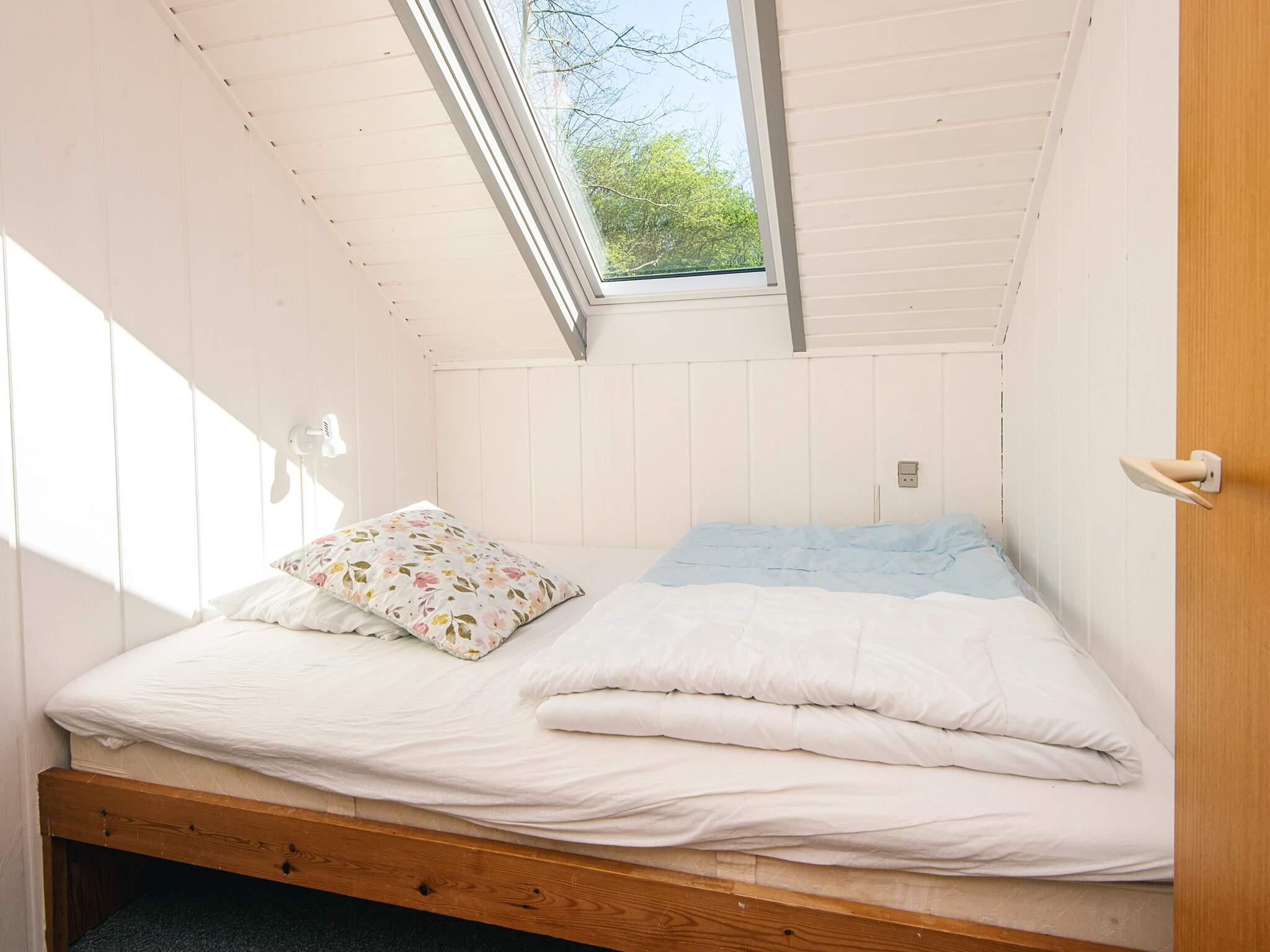 Der er 3 soveværelser, som alle er placeret med adgang fra sommerhusets entre, så det er muligt for børn at trække sig tilbage fra fællesrummet for at slappe af. Det er også fra gangen adgang til et mindre badeværelse med bruseniche.