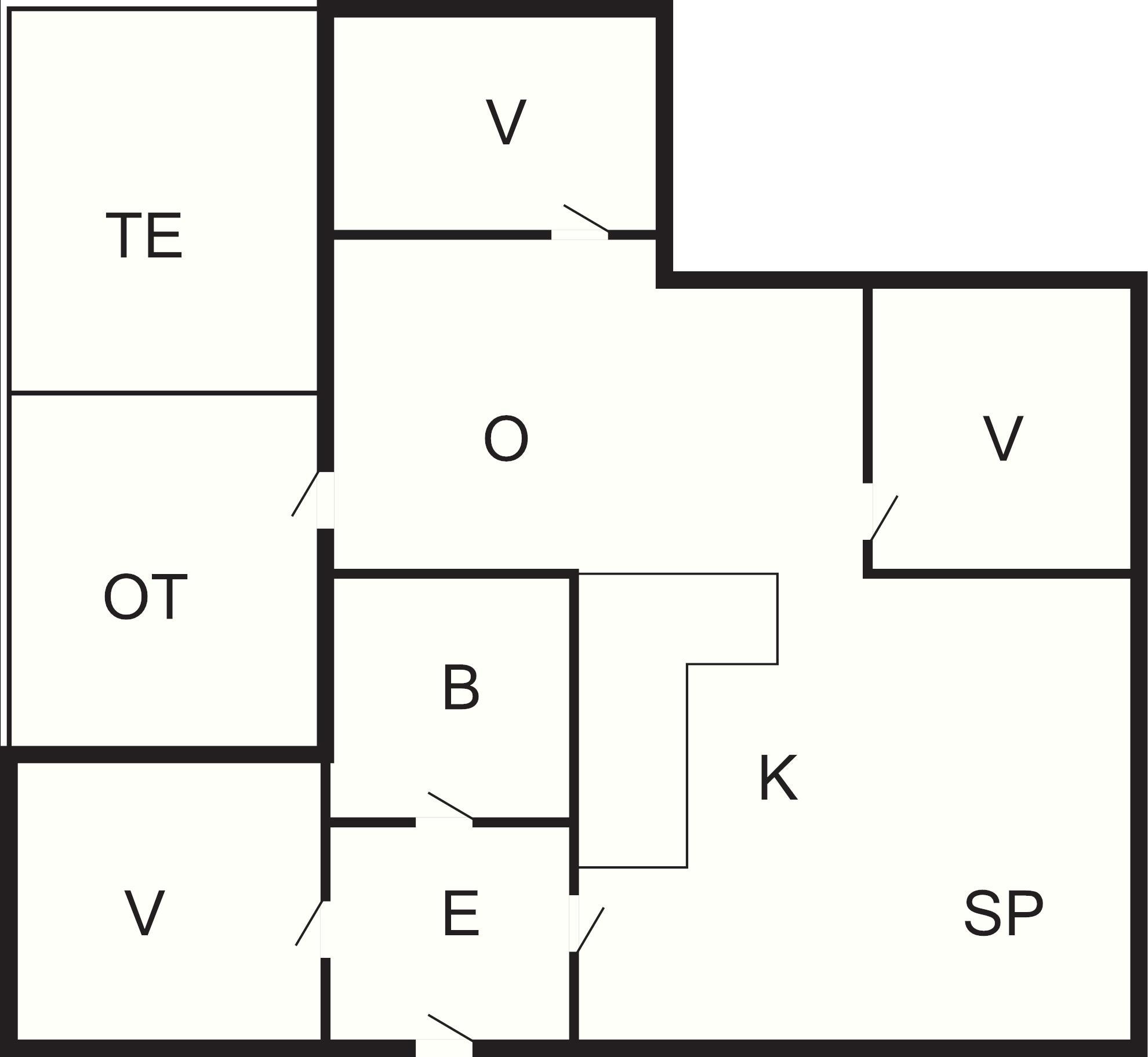 3 Soveværelser: (1DS)+(2S)+(2K), barneseng