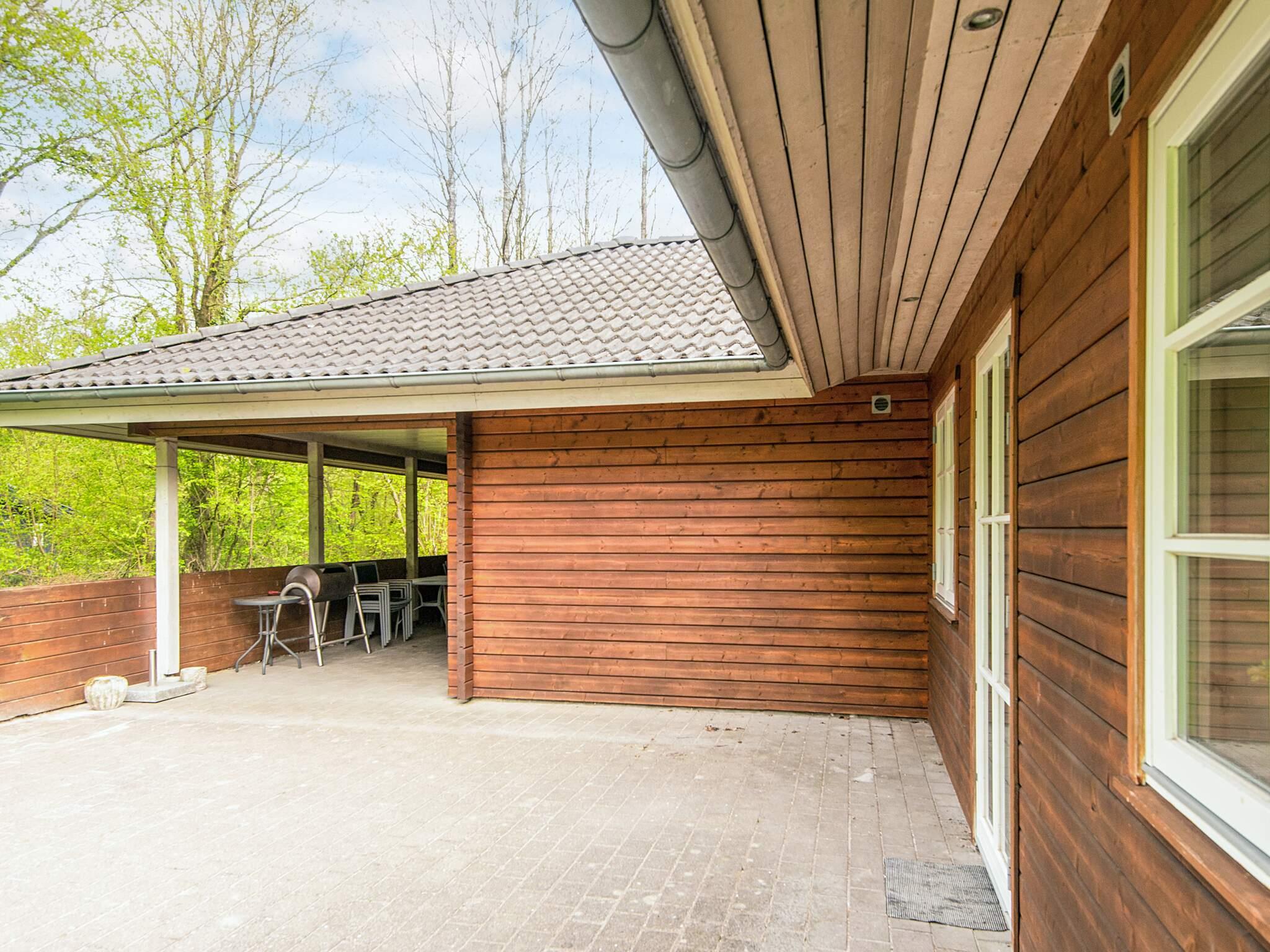 Rummeligt sommerhus med god indretning og praktisk møblering. Der er trådløst internet. Huset er beliggende på rolig naturgrund med stor, åben terrasse ud til det grønne område. Afstand til svømmehal ca. 1300 m og fiskesø ca. 1100 m.