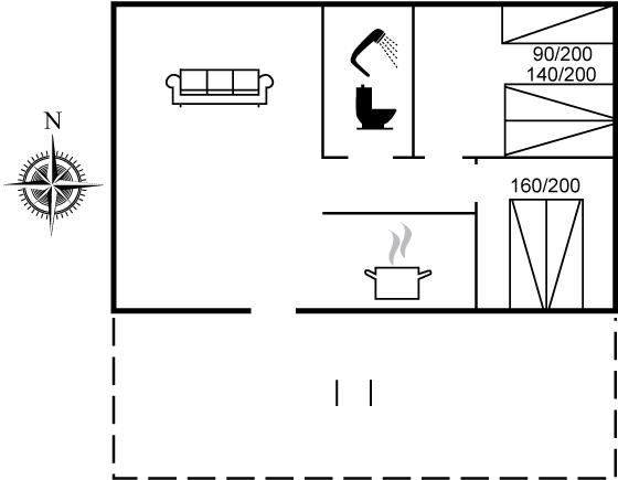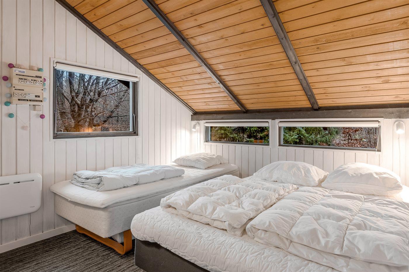 Der er i alt 2 soveværelser. Sovepladserne fordeler sig på: 4 sovepladser i dobbeltsenge. 1 soveplads i enkeltseng. 2 sovepladser i sovesofa (enkelt). 2 af disse sovepladser befinder sig i stuen.