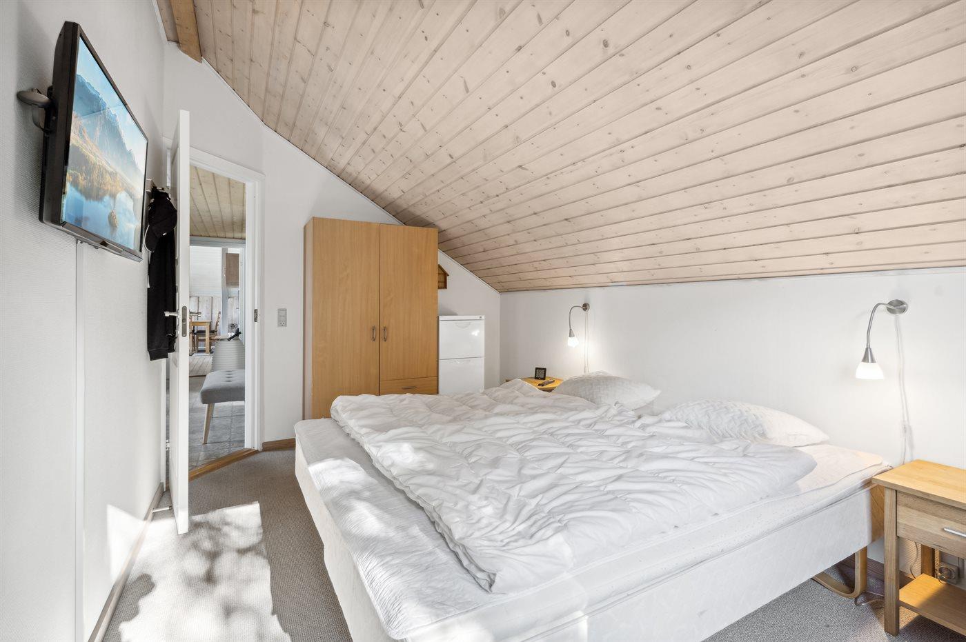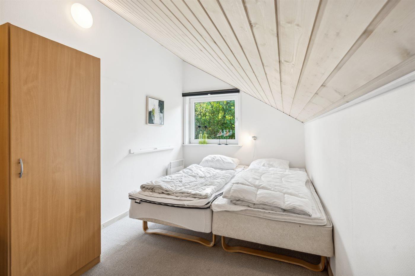 Der er i alt 3 soveværelser. Sovepladserne fordeler sig på: 2 sovepladser i dobbeltseng. 4 sovepladser i enkeltsenge. Derudover er der 1 stk. barneseng.