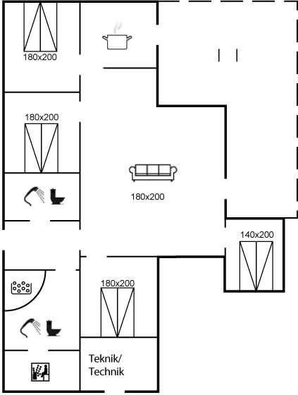 Der er i alt 4 soveværelser. Sovepladserne fordeler sig på: 8 sovepladser i dobbeltsenge. Derudover er der 1 stk. barneseng.