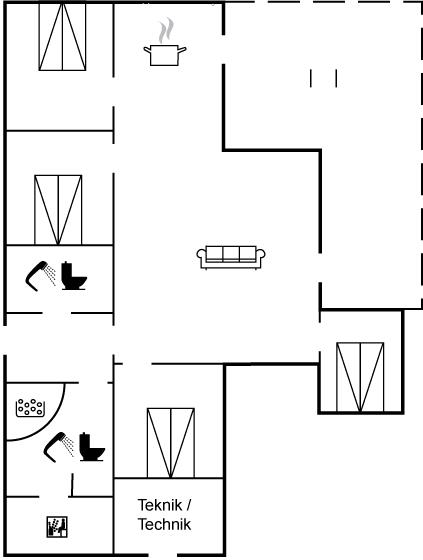 Der er i alt 4 soveværelser. Sovepladserne fordeler sig på: 8 sovepladser i dobbeltsenge. Derudover er der 1 stk. barneseng.