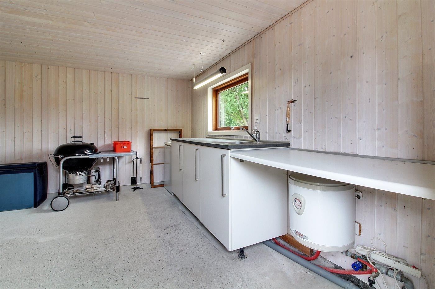 Ferieboligen er beliggende på en 800 m² stor naturgrund. Der er 30000 m til havet. Der er 17000 m til Vadehavet. Der er en sø i en afstand af 550 m. Nærmeste forretning er beliggende i en afstand af 700 m. Til ferieboligen hører 40 m² terrasseareal. Hængesofa. Der er redskabsrum. Sandkasse. Der er carport til rådighed. Der er installeret stik til opladning af elbil. Type 2 stik. Parkering ved ferieboligen.