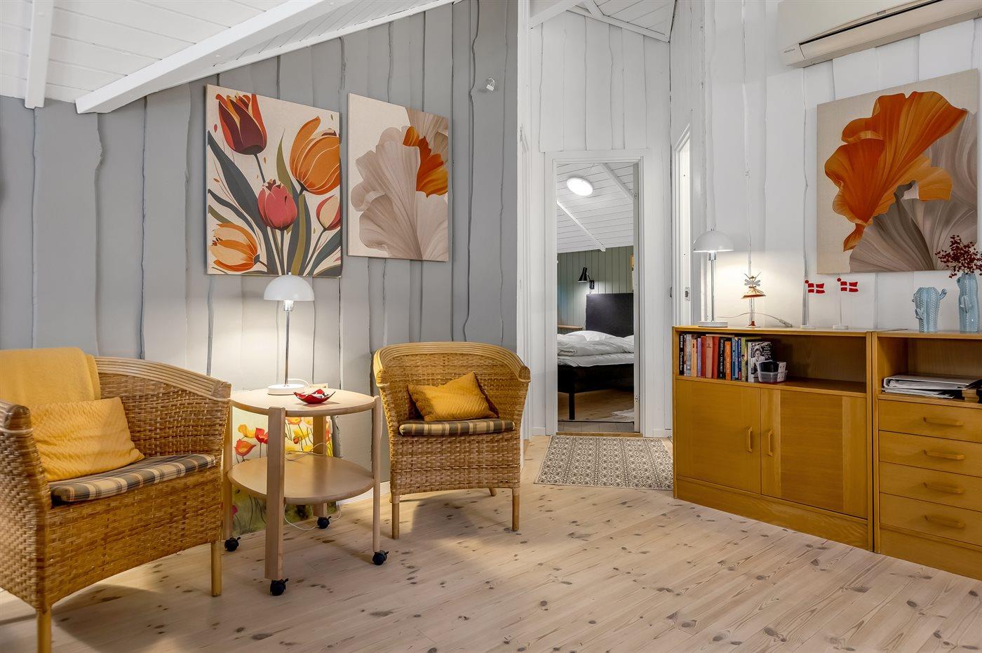 Der er i alt 3 soveværelser. Sovepladserne fordeler sig på: 4 sovepladser i dobbeltsenge. 3 sovepladser i køjesenge.