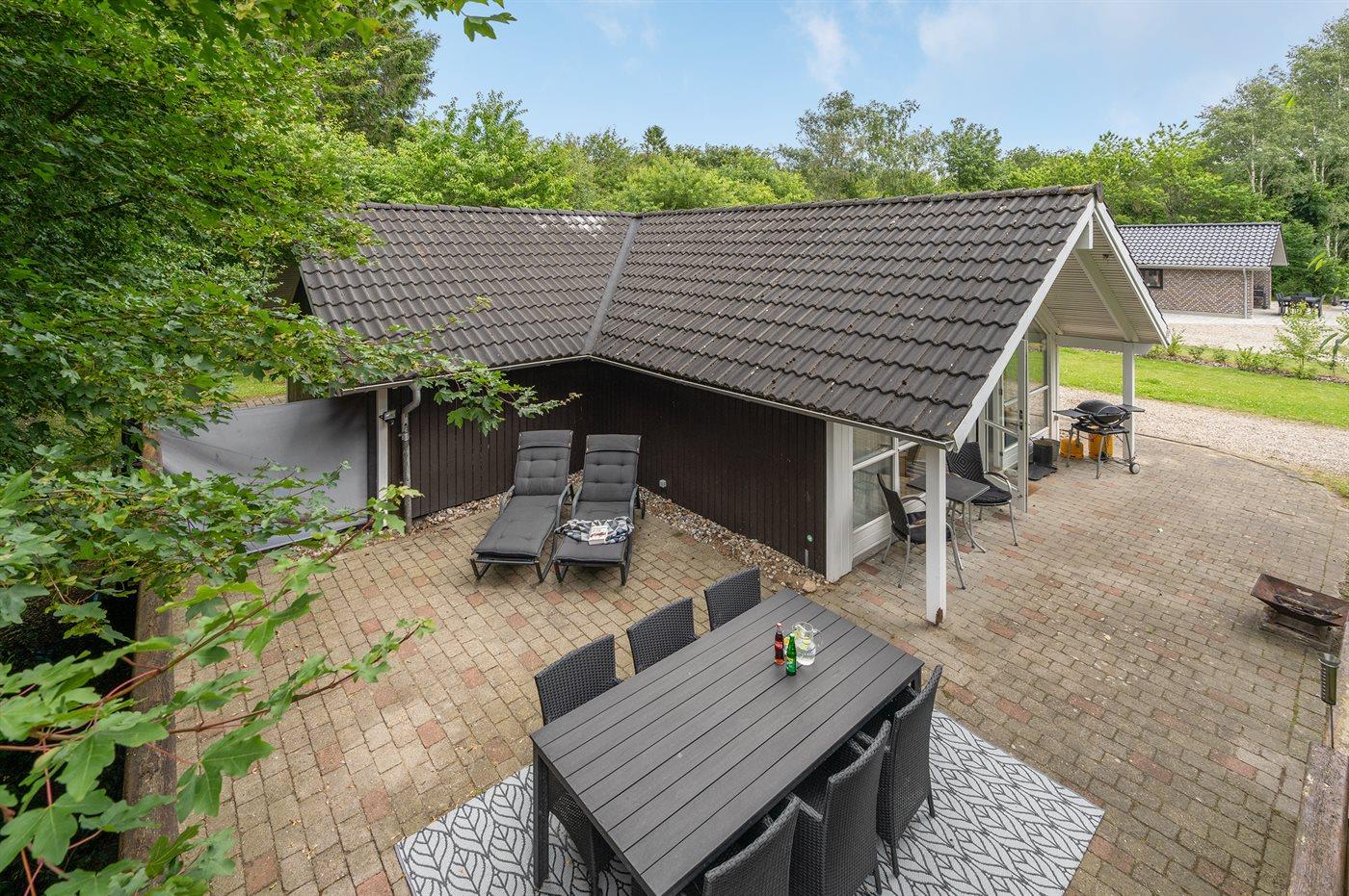 Ferieboligen er beliggende på en 805 m² stor naturgrund. Der er 28000 m til havet. Nærmeste forretning er beliggende i en afstand af 1000 m. Der er en golfbane i en afstand af 1500 m. Til ferieboligen hører 30 m² terrasseareal. Desuden er der 10 m² overdækket terrasse. Gynge. Sandkasse. Der er installeret stik til opladning af elbil. Parkering ved ferieboligen.