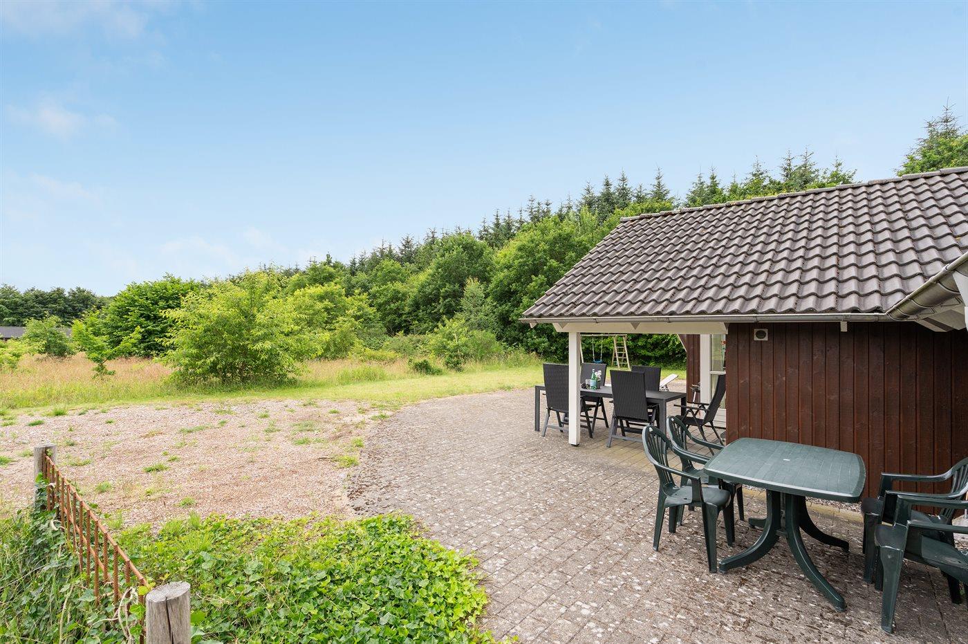 Ferieboligen er beliggende på en 875 m² stor naturgrund. Der er 28000 m til havet. Nærmeste forretning er beliggende i en afstand af 300 m. Til ferieboligen hører 100 m² terrasseareal. Desuden er der 10 m² overdækket terrasse. Parkering ved ferieboligen.