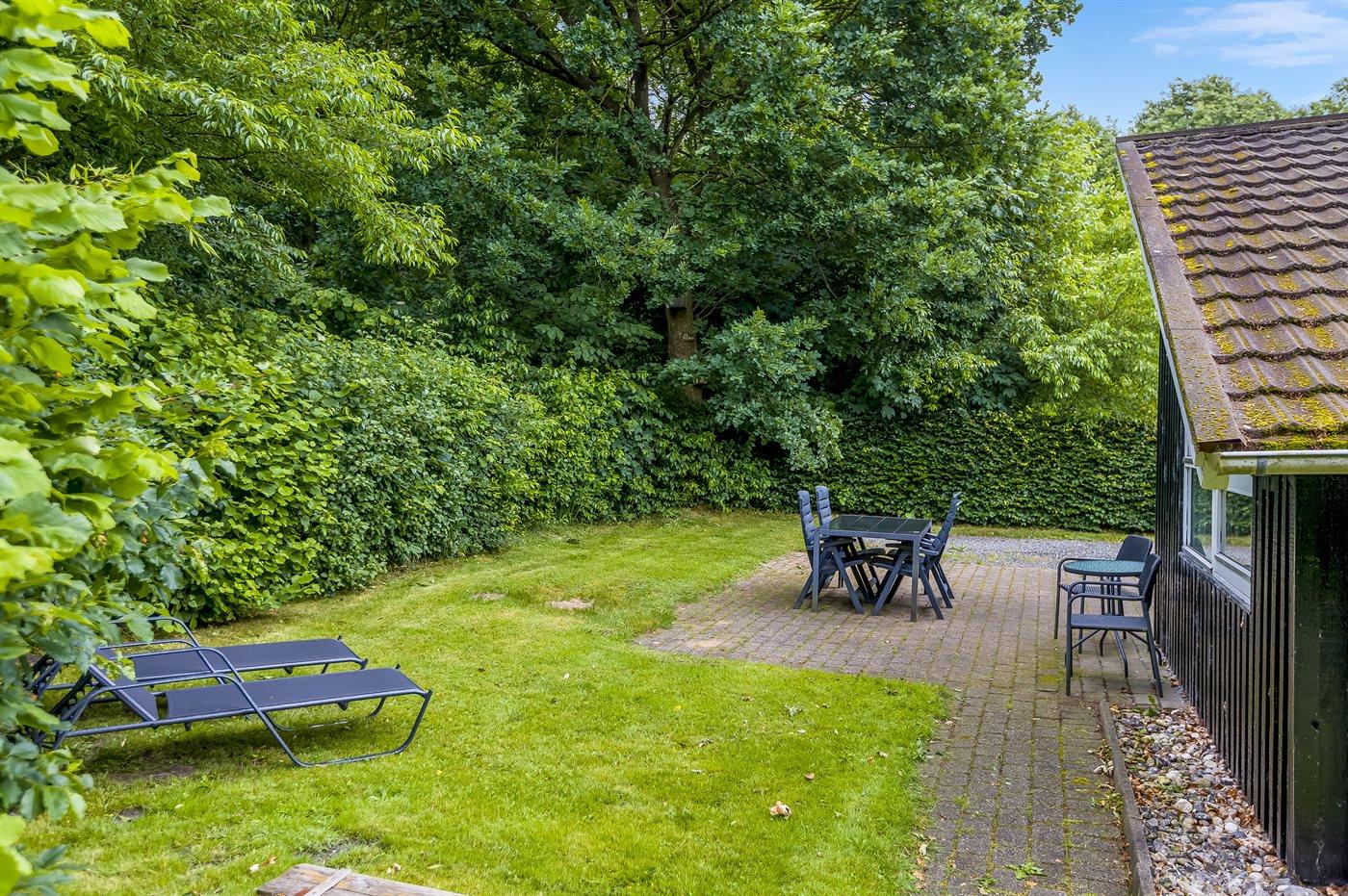 Ferieboligen er beliggende på en 875 m² stor naturgrund. Der er 28000 m til havet. Nærmeste forretning er beliggende i en afstand af 350 m. Til ferieboligen hører 40 m² terrasseareal. Desuden er der 20 m² overdækket terrasse. Sandkasse. Legehus. Parkering ved ferieboligen.
