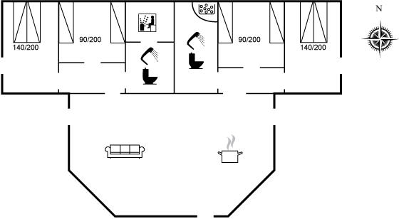 Der er i alt 4 soveværelser. Sovepladserne fordeler sig på: 4 sovepladser i dobbeltsenge. 4 sovepladser i enkeltsenge.