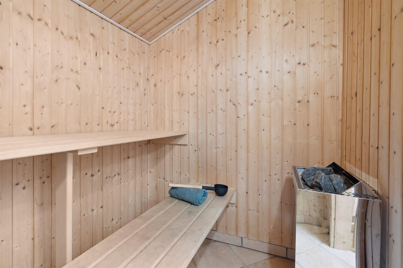 Der er 2 badeværelser med bruser og 2 toiletter. Der er gulvvarme på 2 badeværelser. I saunaen er der mulighed for afslapning.