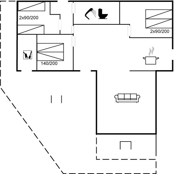 Der er i alt 3 soveværelser. Sovepladserne fordeler sig på: 4 sovepladser i dobbeltsenge. 2 sovepladser i enkeltsenge.