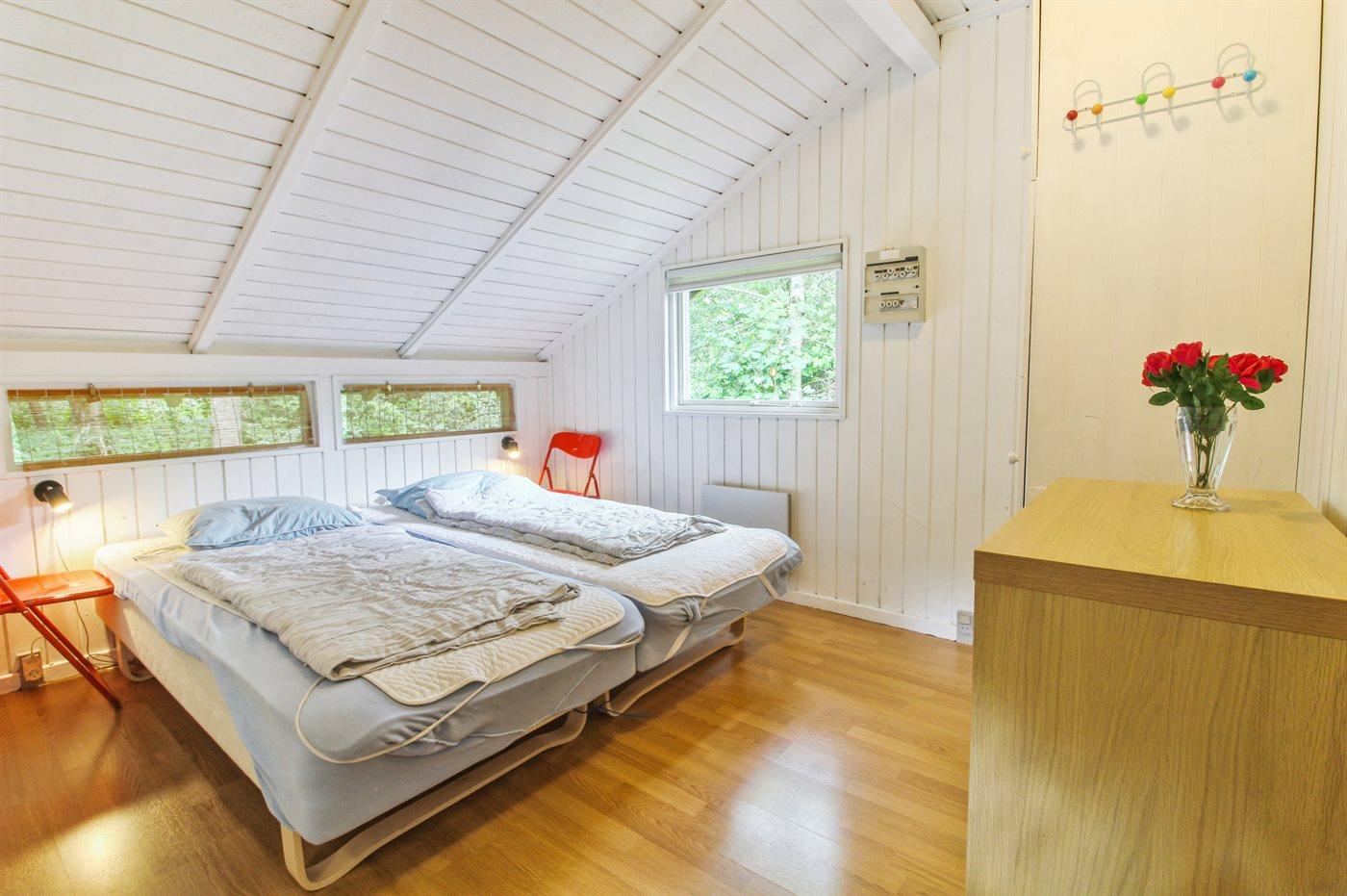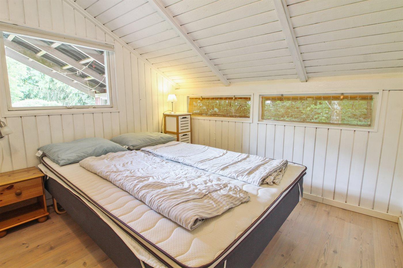 Der er i alt 3 soveværelser. Sovepladserne fordeler sig på: 4 sovepladser i dobbeltsenge. 2 sovepladser i enkeltsenge. Derudover er der 1 stk. barneseng.