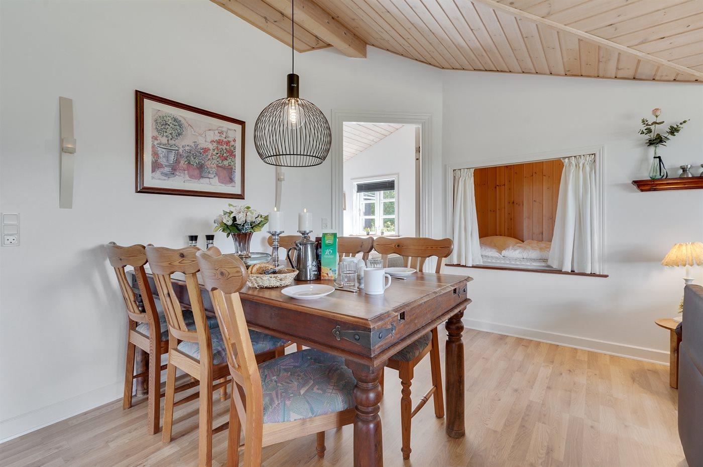 Dette pæne og rummelige sommerhus ligger i et hyggeligt sommerhusområde, som er omgivet af en fantastisk smuk natur og et utal af aktivitetsmuligheder for hele familien. Bemærk, at 2 af sovepladserne befinder sig i en alkove i opholdsstuen.