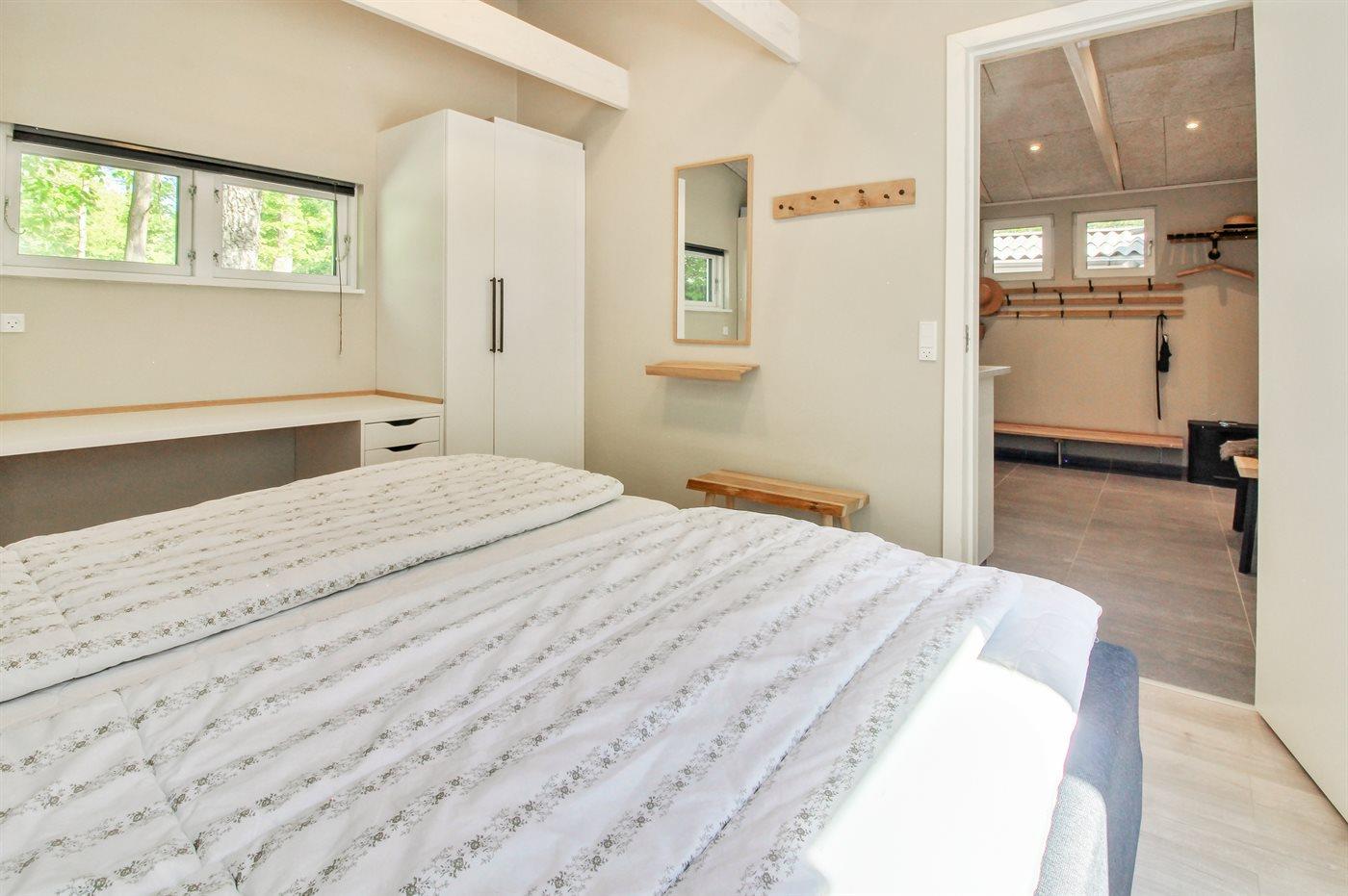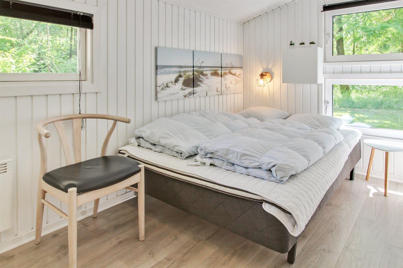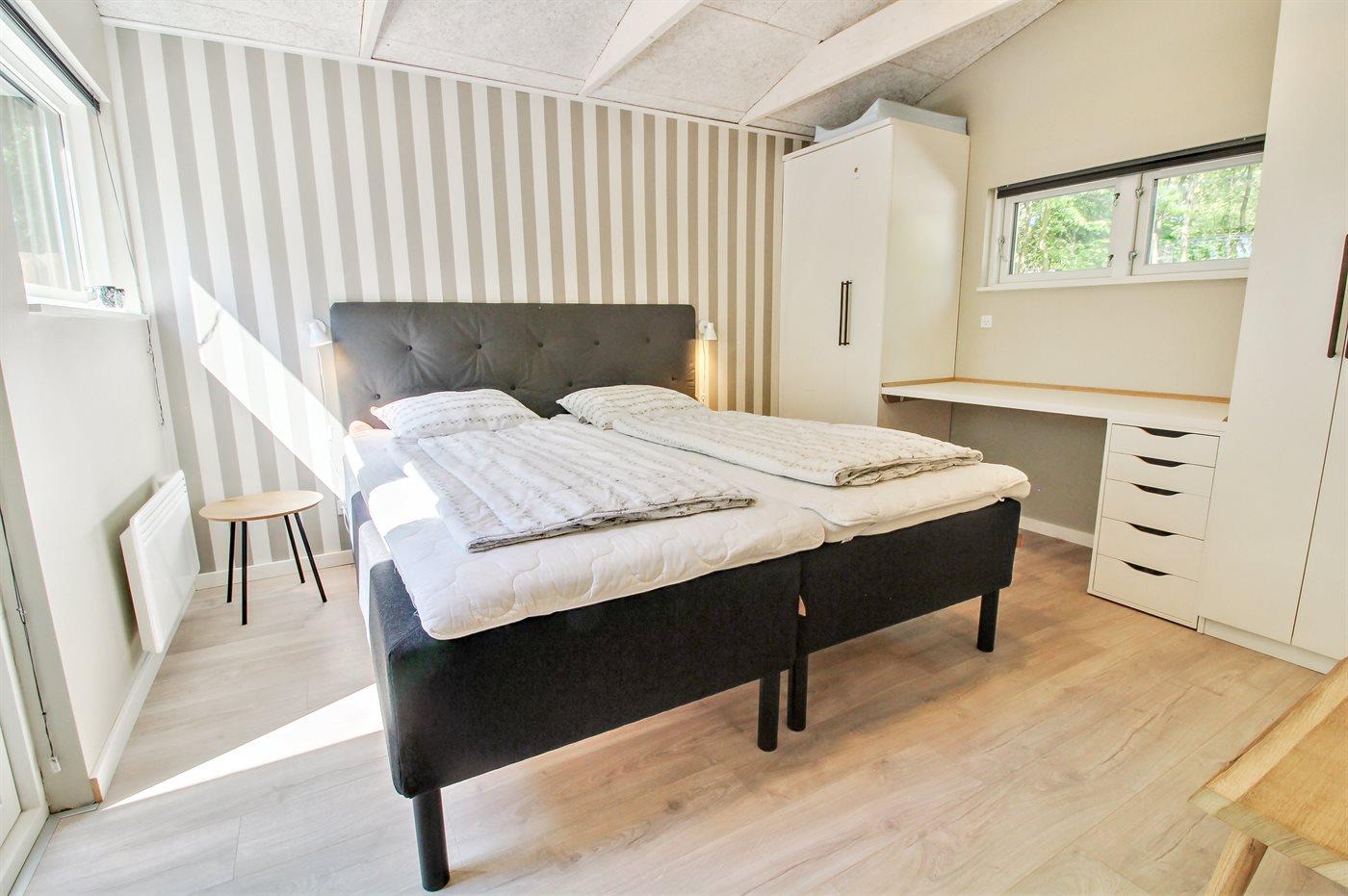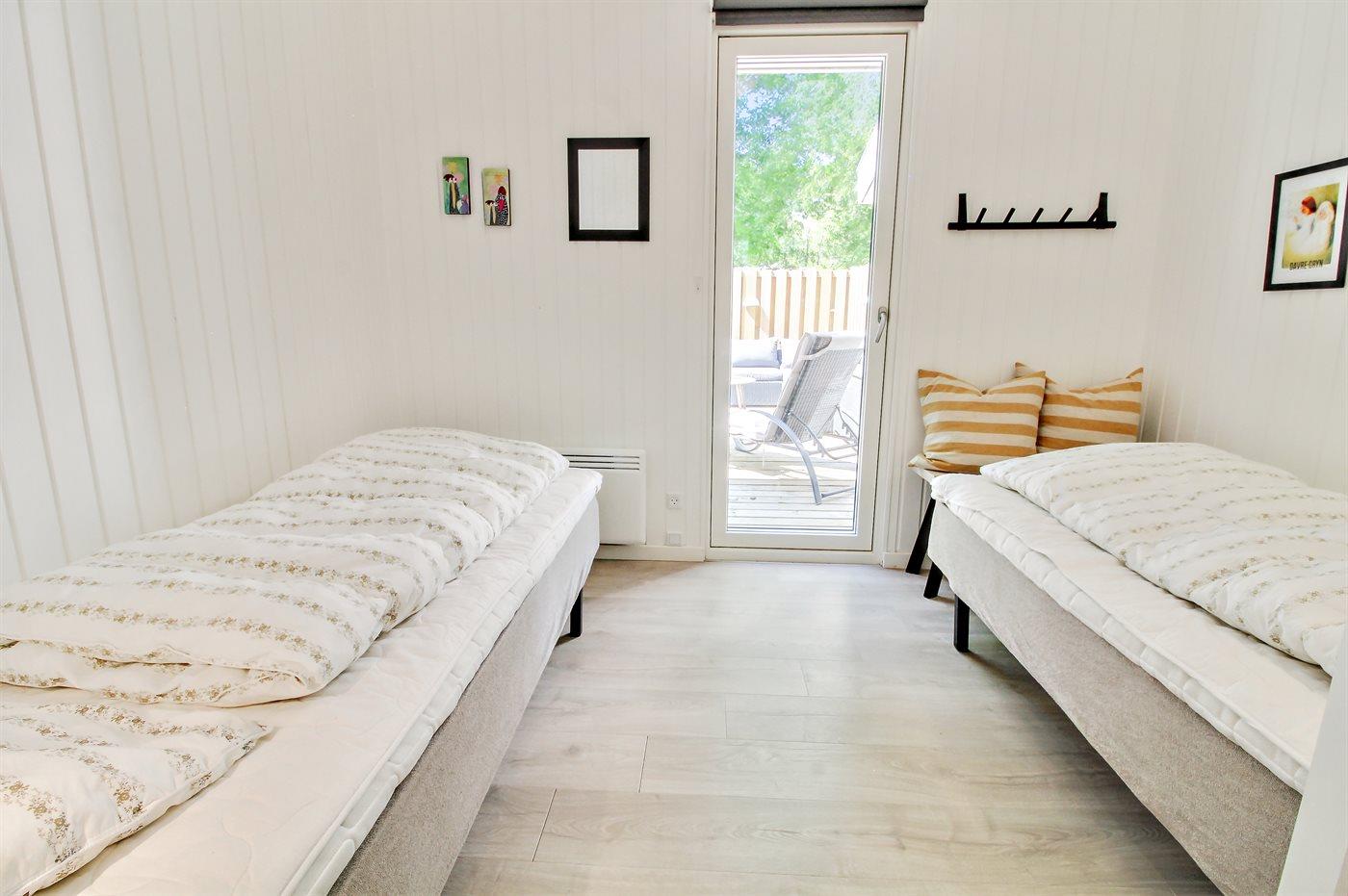 Der er i alt 3 soveværelser. Sovepladserne fordeler sig på: 4 sovepladser i dobbeltsenge. 2 sovepladser i enkeltsenge. Derudover er der 1 stk. barneseng.