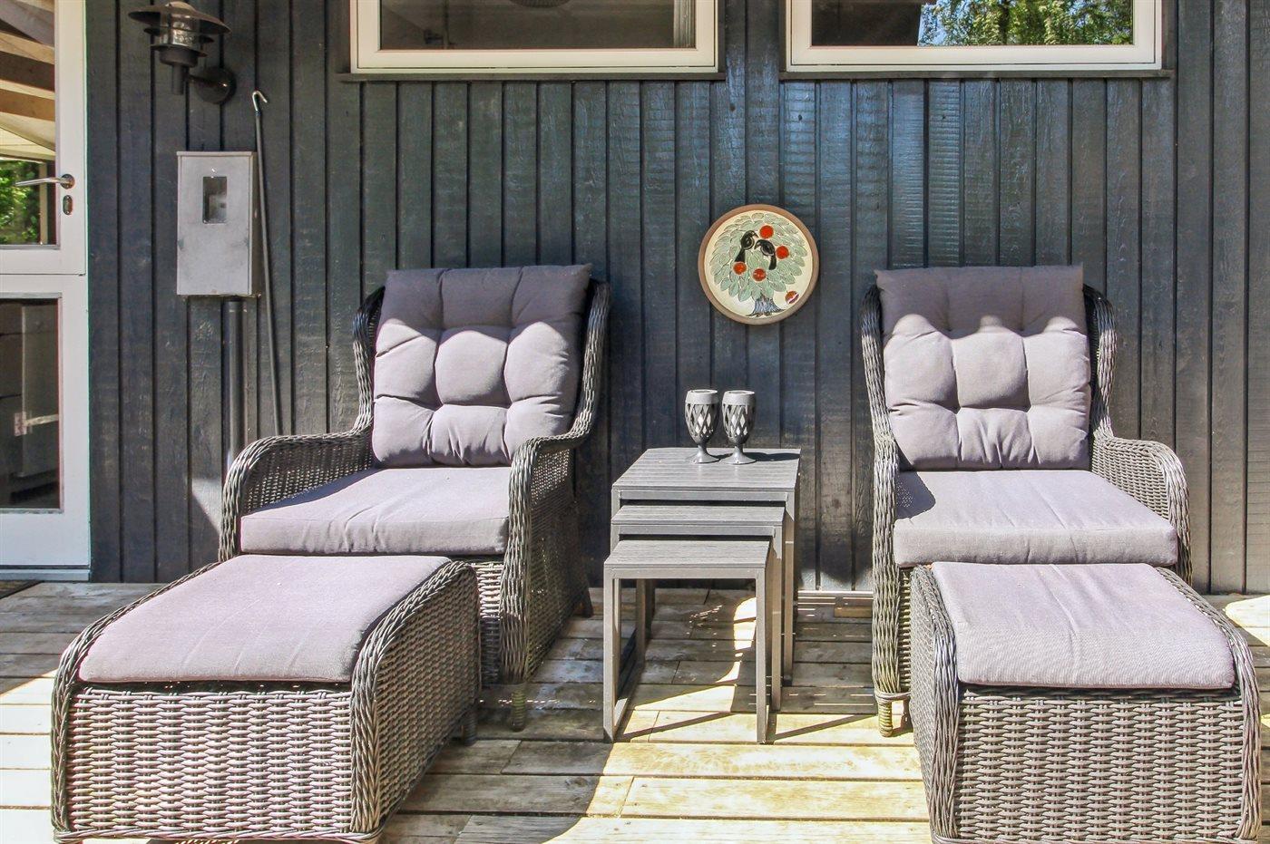 Ferieboligen er beliggende på en 879 m² stor havegrund. Der er 31000 m til havet. Der er 16000 m til Vadehavet. Nærmeste forretning er beliggende i en afstand af 1000 m. Til ferieboligen hører åbent terrasseareal. Desuden er der overdækket terrasse. Gynge. Sandkasse. Rutchebane. Der ligger en legeplads i en afstand af 1000 m. Shelter. Grill til rådighed. Der er carport til rådighed. Parkering ved ferieboligen.