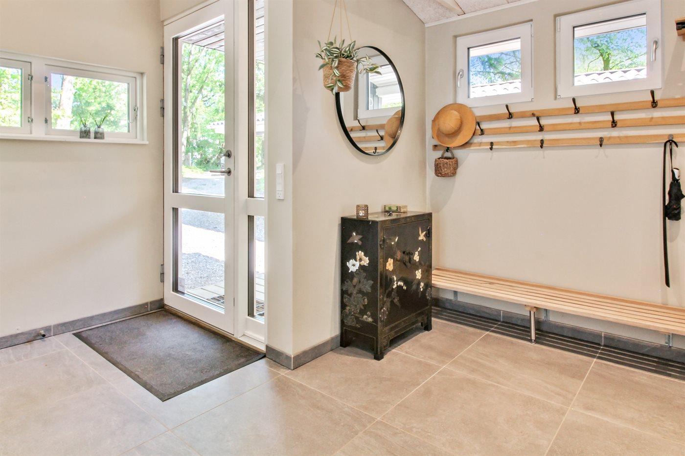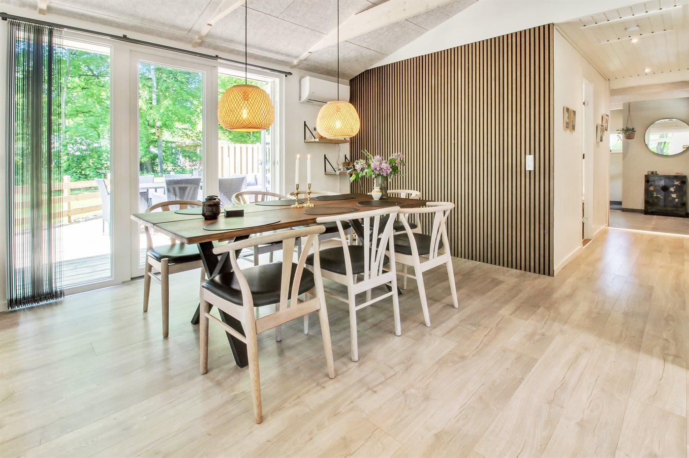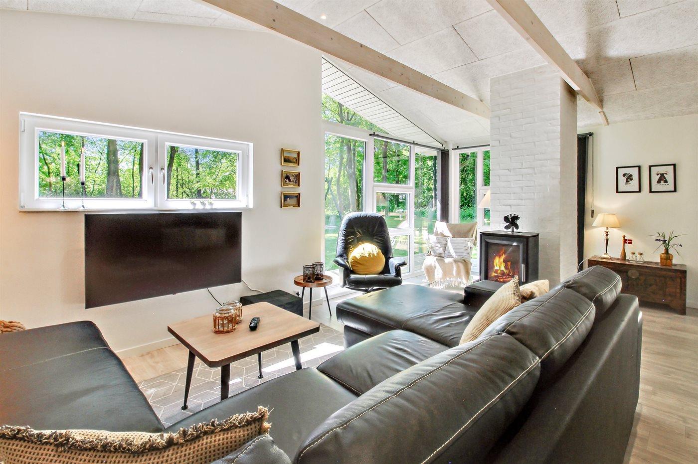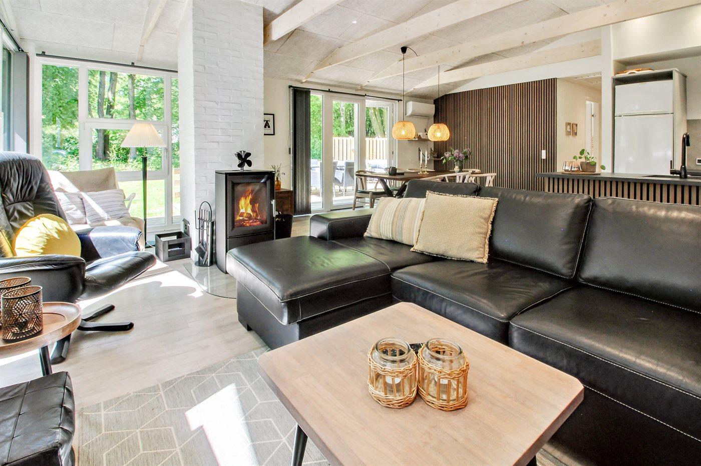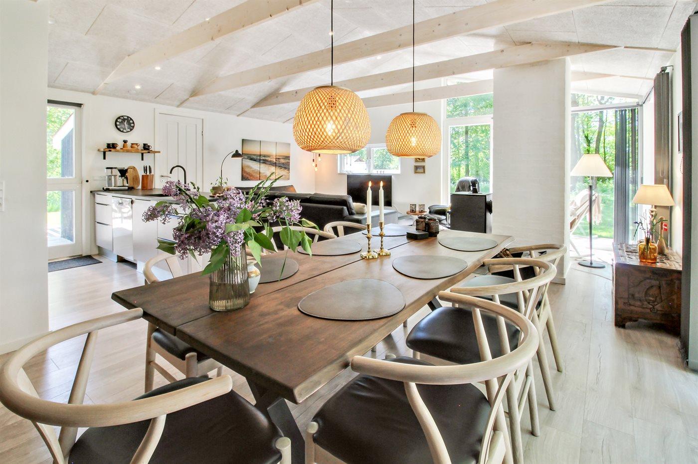 Sommerhuset er totalrenoveret i 2023 og fremstår lyst og indbydende med god plads til 6 personer. Sommerhuset er hyggeligt indrettet med gode komfortable møbler. Der findes en entré med god plads til jakker og sko, stort veludstyret køkken i åben forbindelse med opholdsstuen, hvor der er lofter til kip og brændeovn, flot badeværelse med bruseniche samt 3 gode soveværelser med skabsplads.