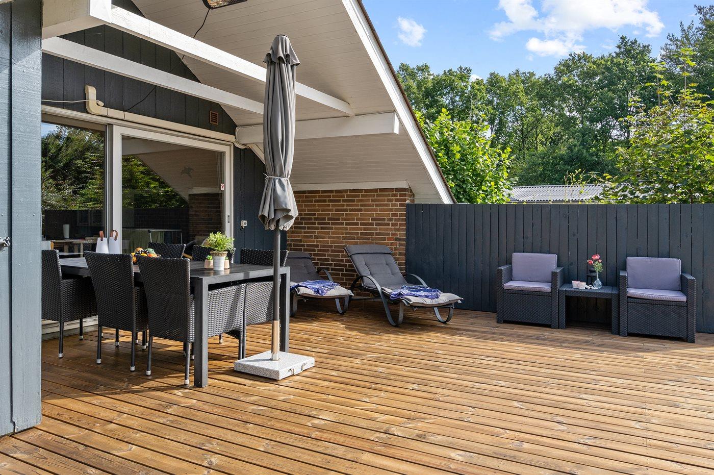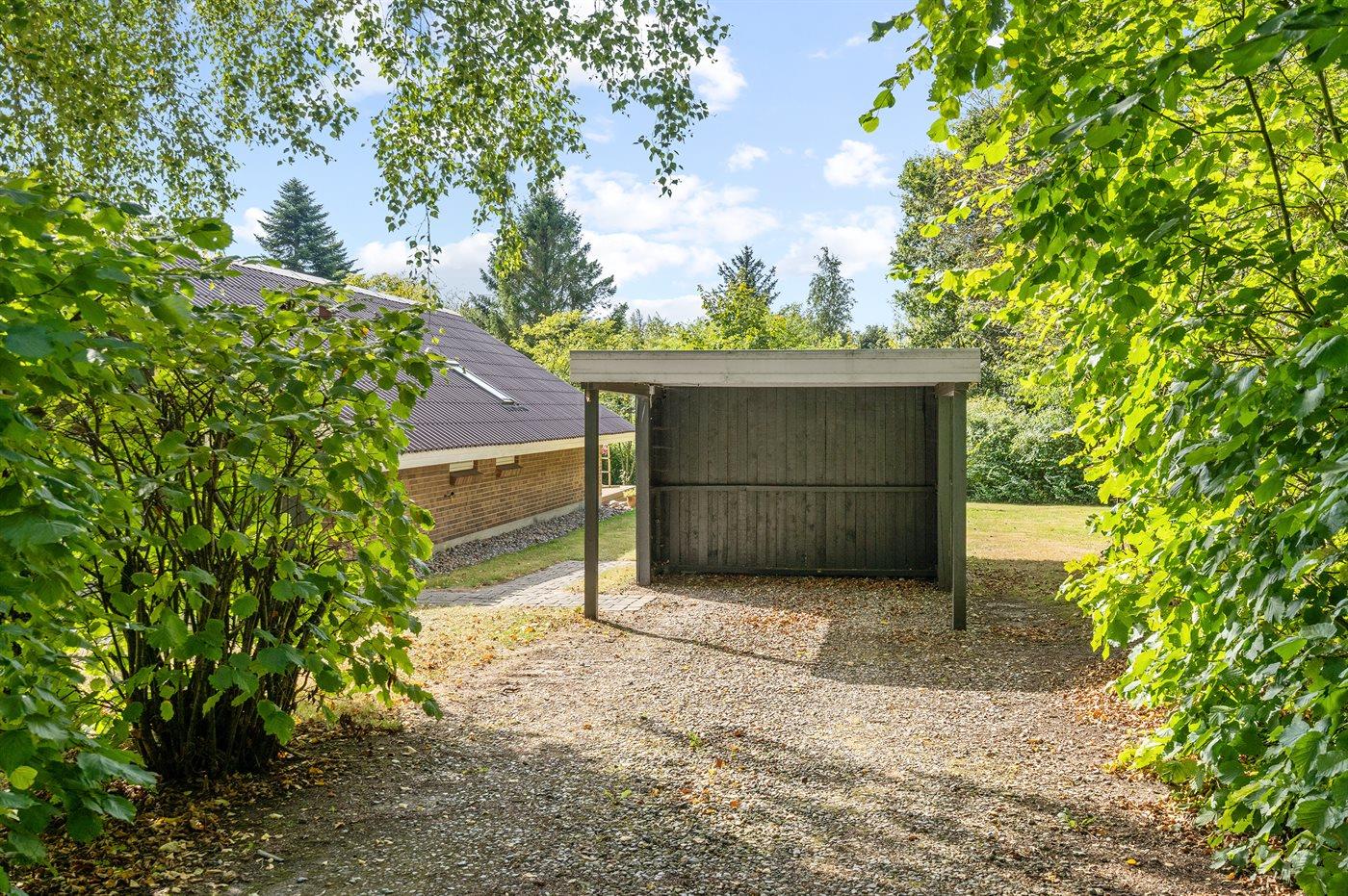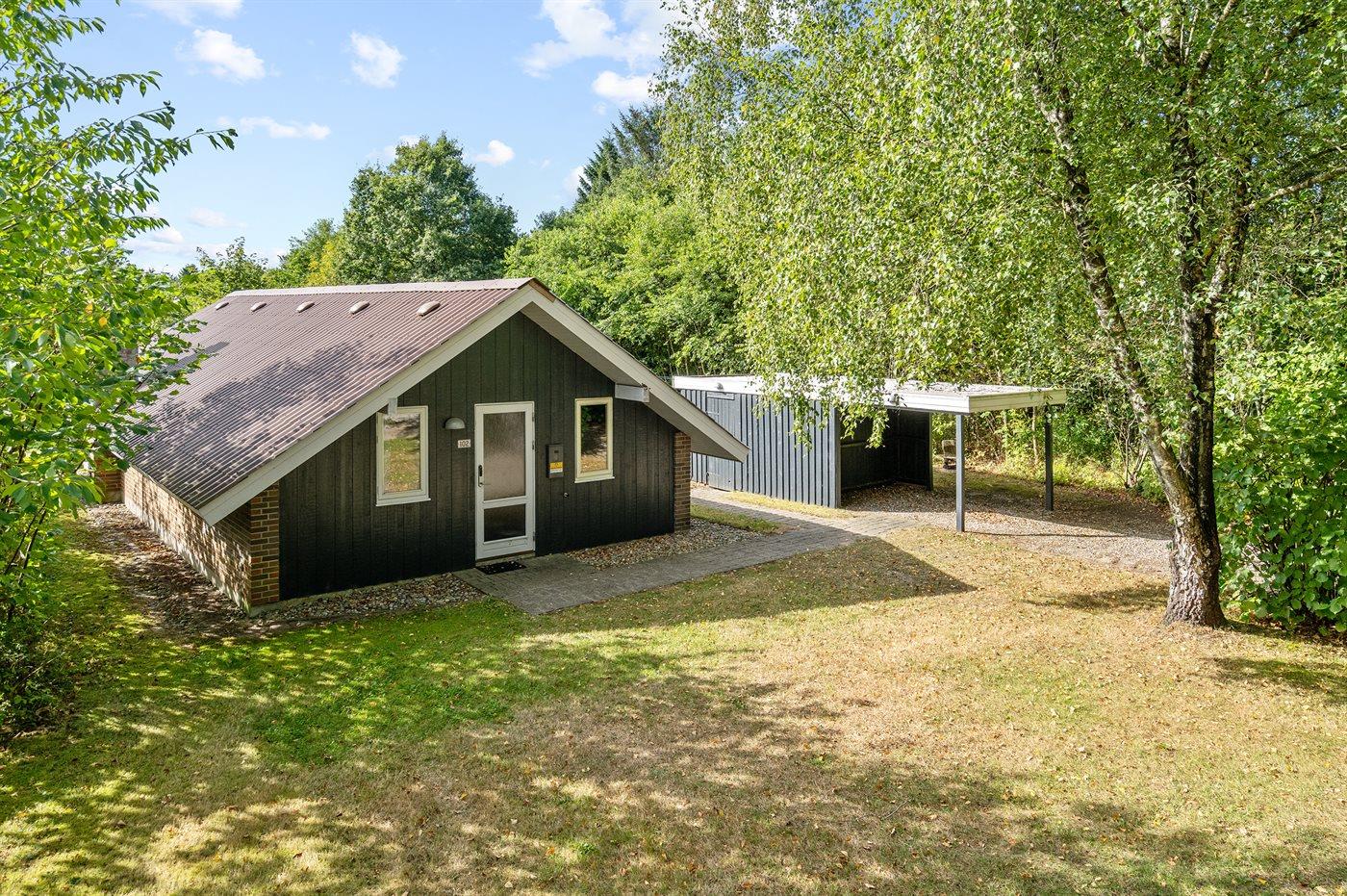 Ferieboligen er beliggende på en 877 m² stor naturgrund. Der er 30000 m til havet. Der er 20000 m til fjorden. Nærmeste forretning er beliggende i en afstand af 1000 m. Til ferieboligen hører 35 m² terrasseareal. Desuden er der 10 m² overdækket terrasse. Der er redskabsrum. Gynge. Sandkasse. Grill til rådighed. Der er carport til rådighed. Parkering ved ferieboligen.