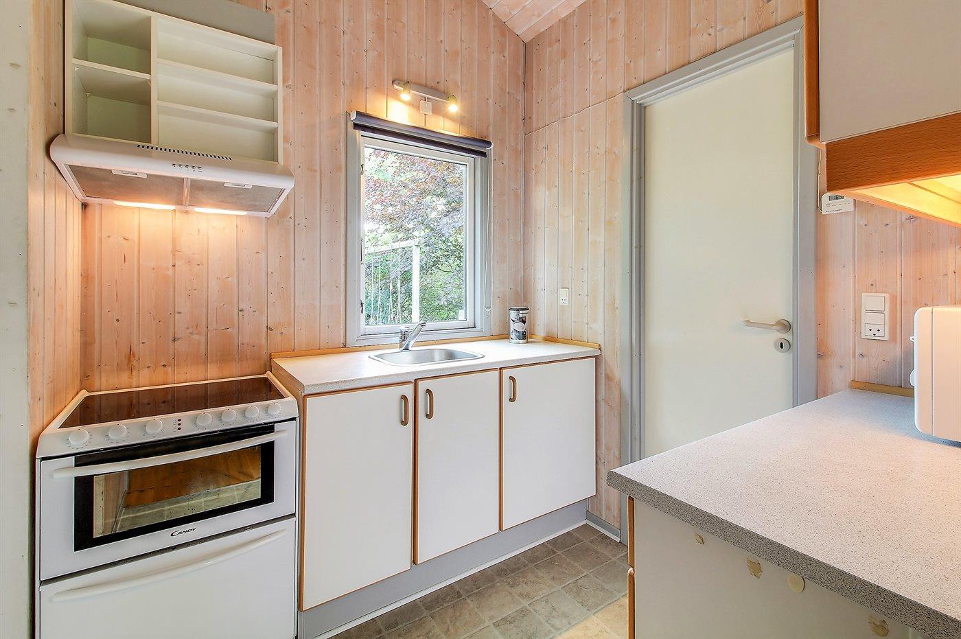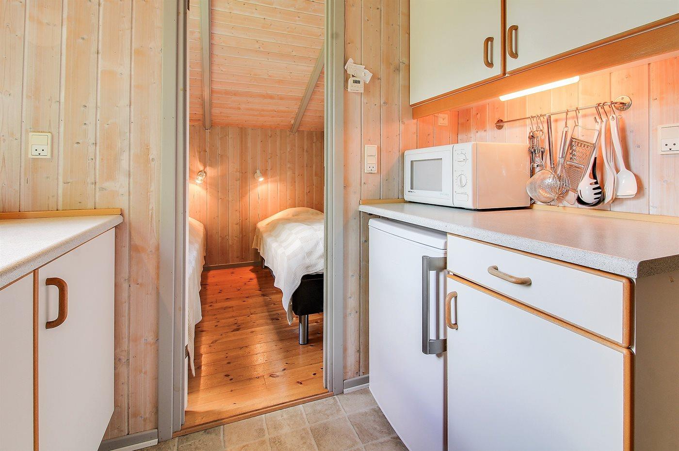 Køkkenet er udstyret med 1 køleskab. Der er 4 keramiske kogeplader. Der findes komfur med opvaskemaskine, varmluftovn, mikrobølgeovn samt opvaskemaskine.