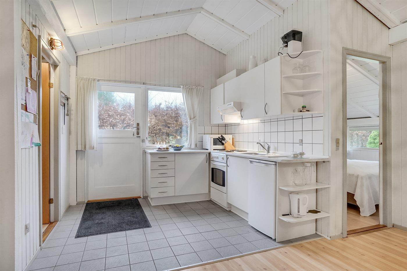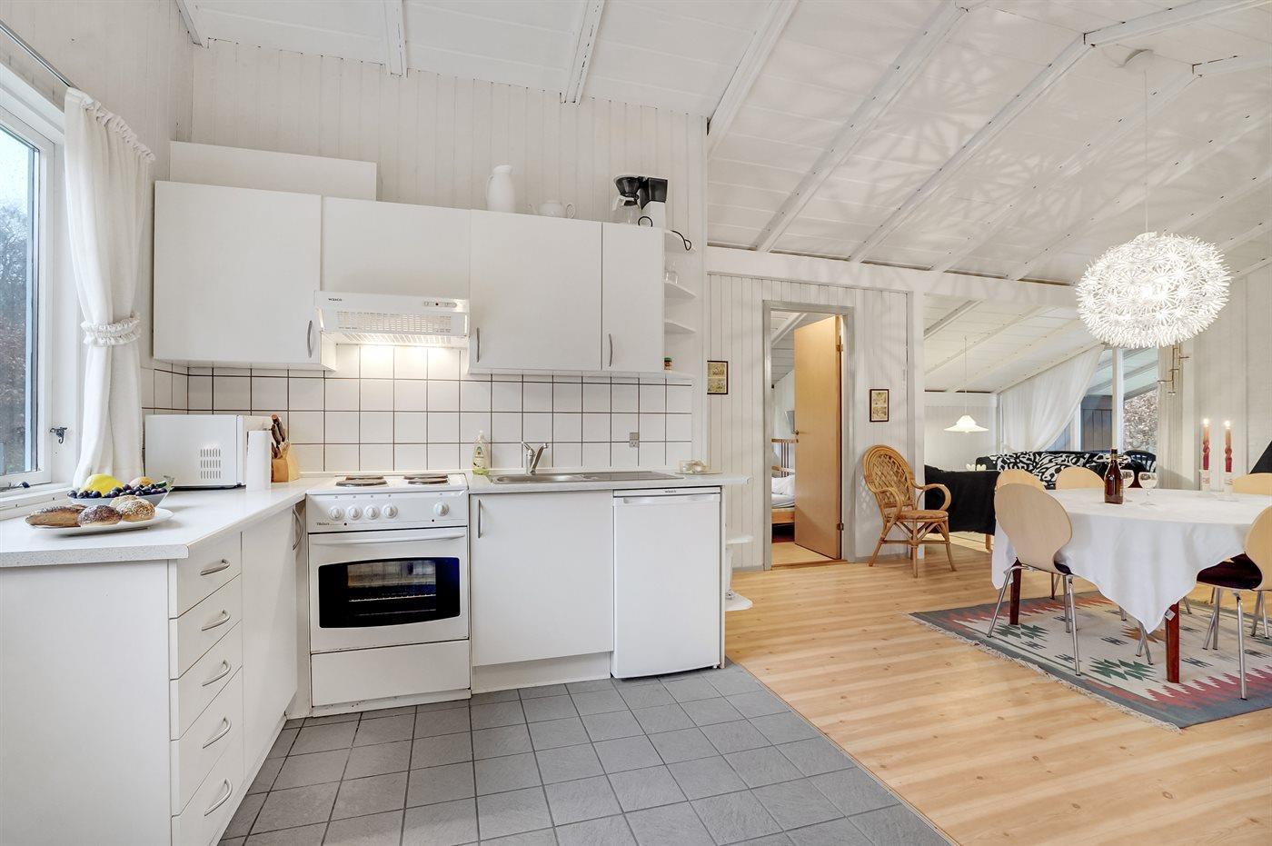 På en ugenert grund ligger dette hyggelige sommerhus, som er indrettet med et dejligt stort køkken/opholdsrum.