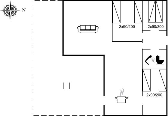 Der er i alt 3 soveværelser. Sovepladserne fordeler sig på: 2 sovepladser i dobbeltseng. 4 sovepladser i enkeltsenge.