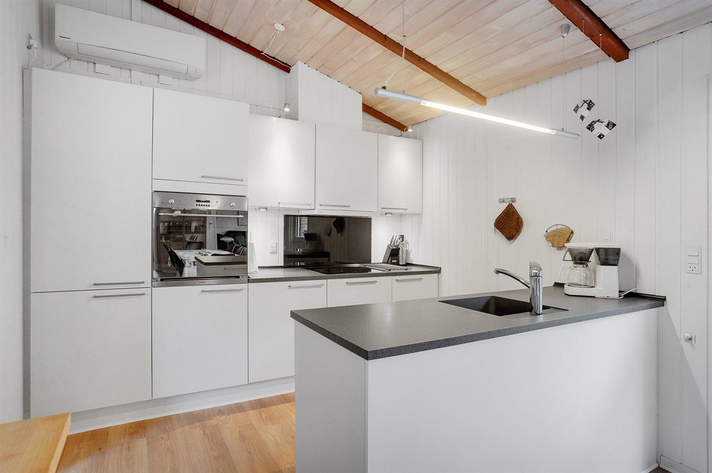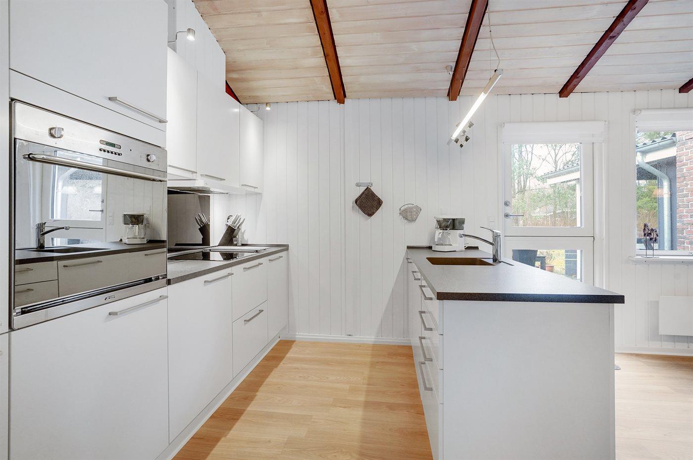 Køkkenet er udstyret med 1 køleskab. Der er 4 keramiske kogeplader, varmluftovn, mikrobølgeovn samt opvaskemaskine.