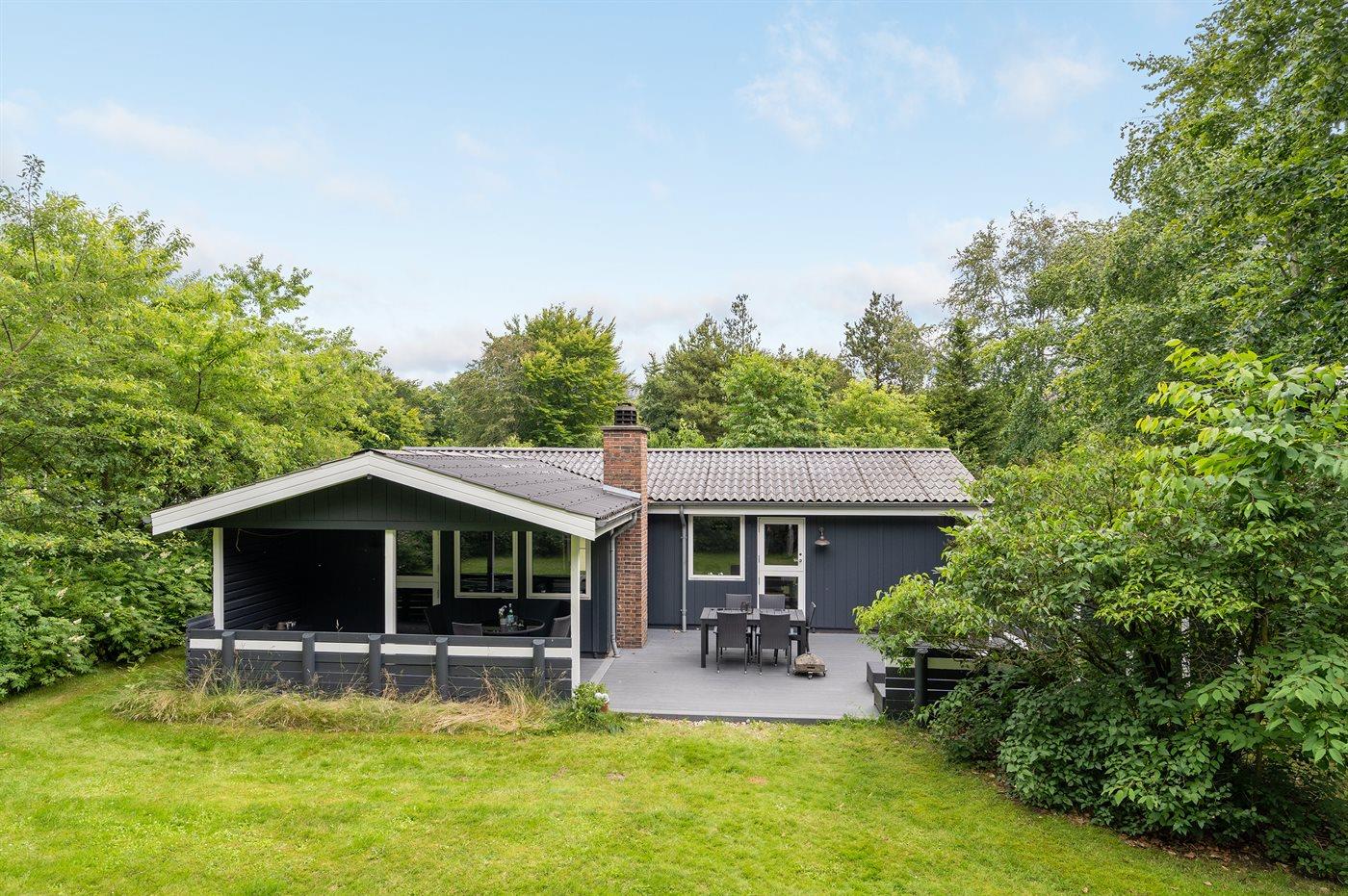 Et rummeligt sommerhus med god møblering og praktisk indretning. Huset ligger på en ugenert naturgrund.