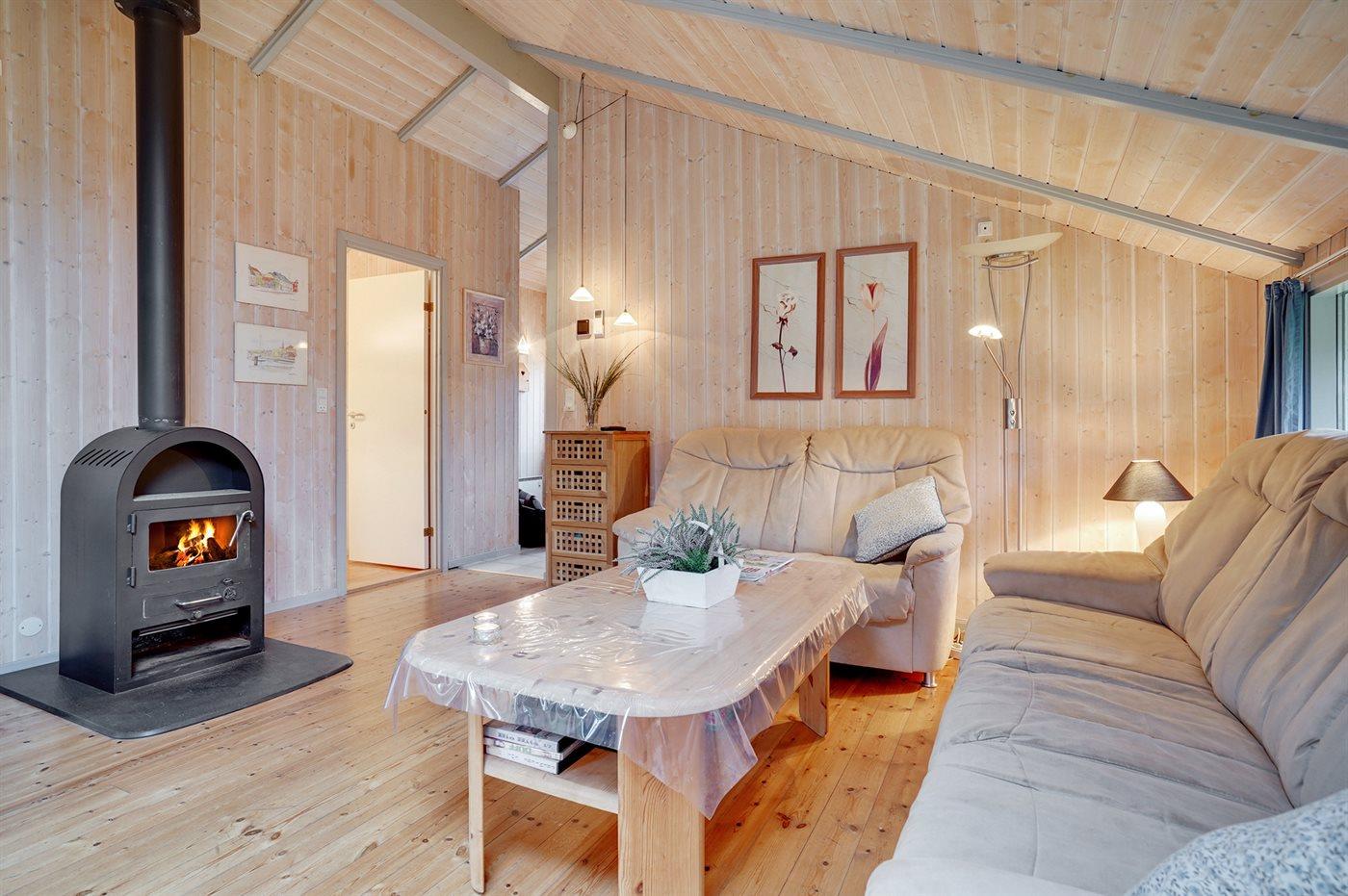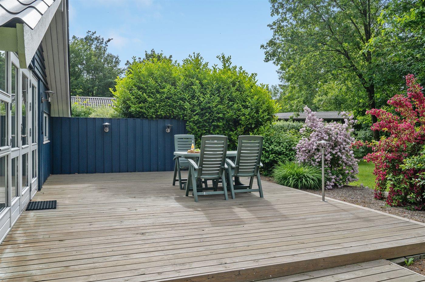 Dette velholdte sommerhus er beliggende på en ugenert naturgrund med græsplæne samt en stor og dejlig, sydvendt træterrasse.