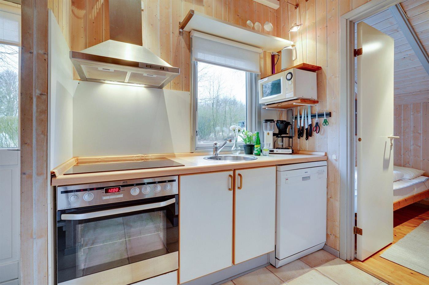 Køkkenet er udstyret med 1 køleskab. Der er 4 keramiske kogeplader, varmluftovn, mikrobølgeovn samt opvaskemaskine.