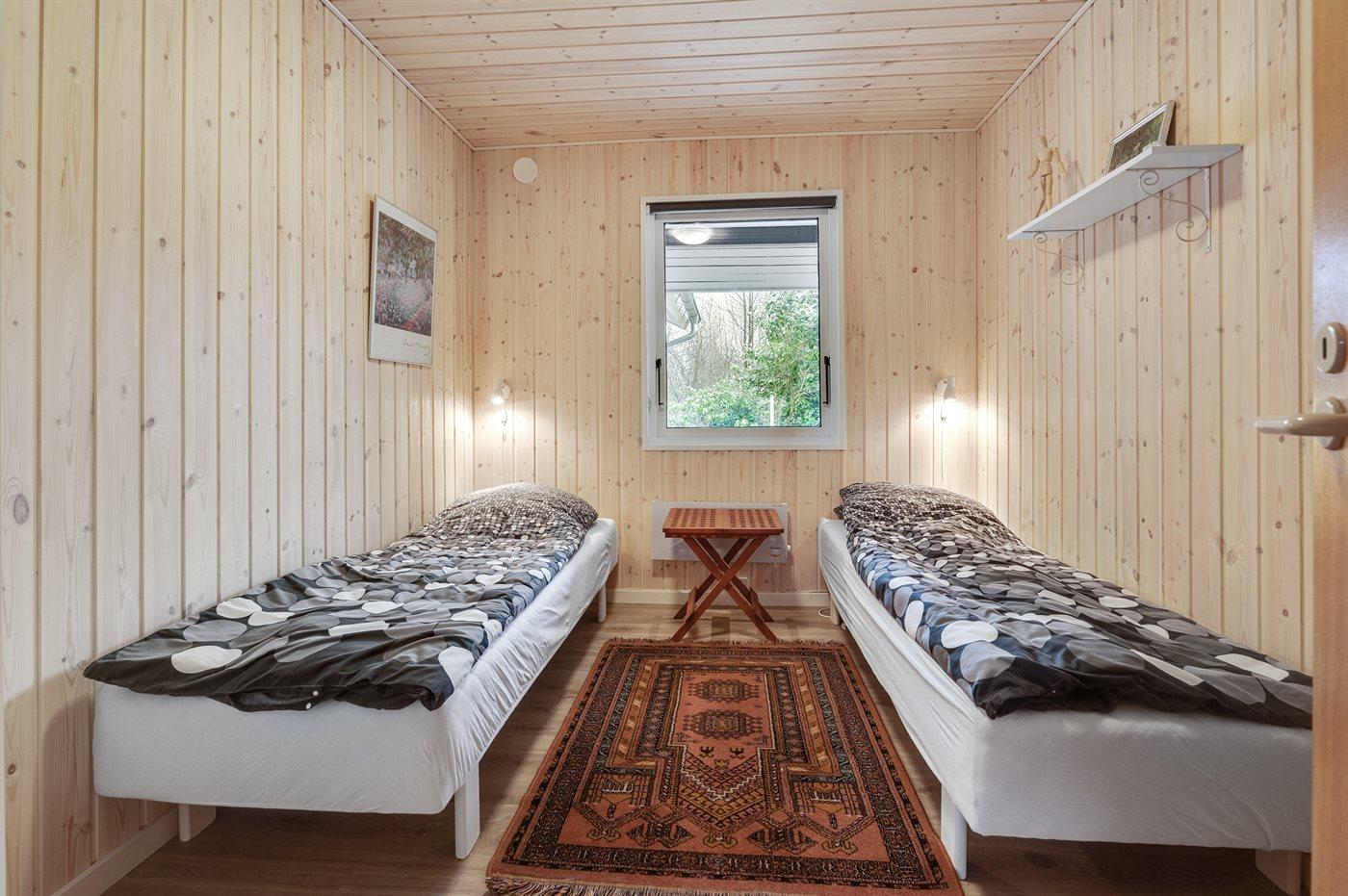 Der er i alt 2 soveværelser. Sovepladserne fordeler sig på: 2 sovepladser i dobbeltseng. 2 sovepladser i enkeltsenge.