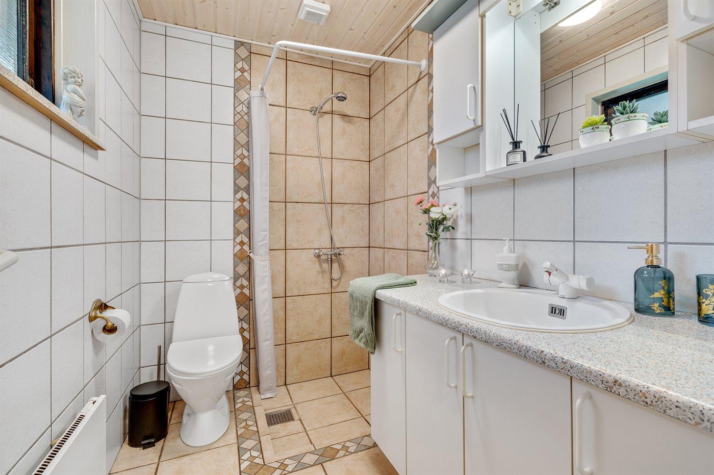 Der er 1 badeværelse med bruseniche og 1 toilet.. Der er gulvvarme på 1 badeværelse.