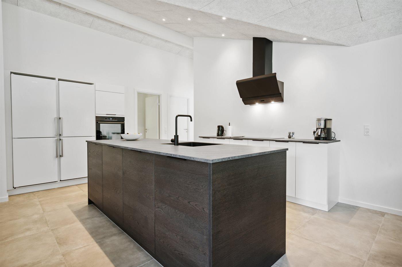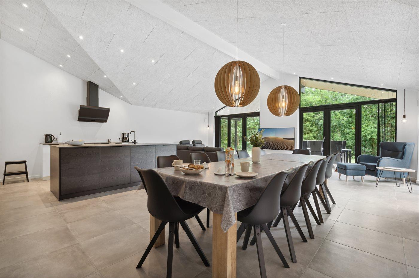 Køkkenet er udstyret med 1 køleskab. Der er 4 induktionskogeplader, varmluftovn, mikrobølgeovn samt opvaskemaskine.