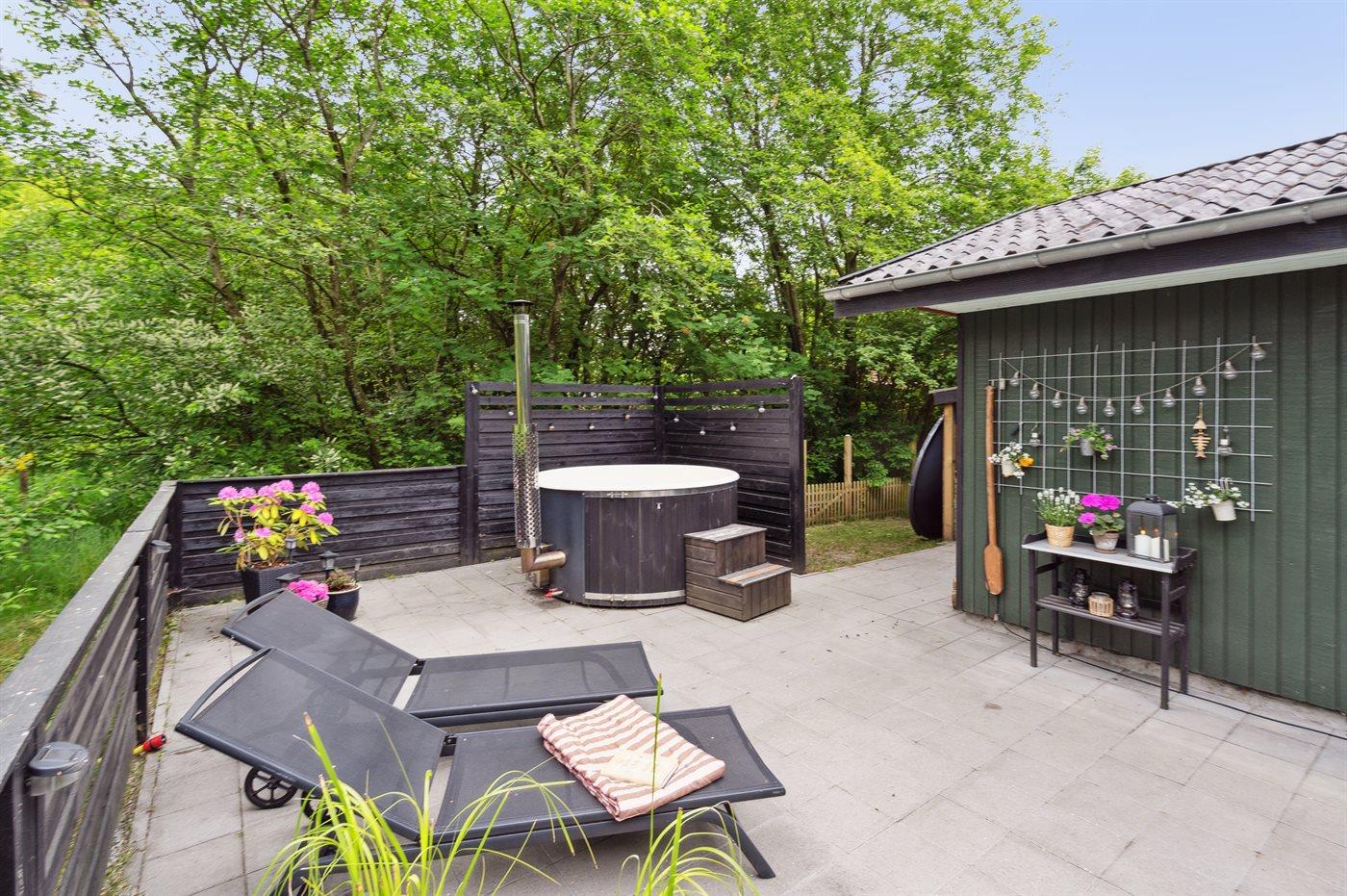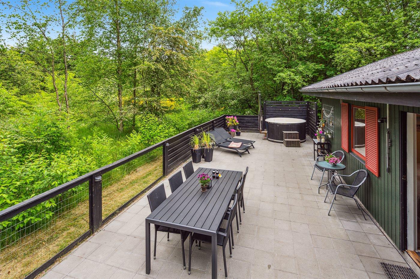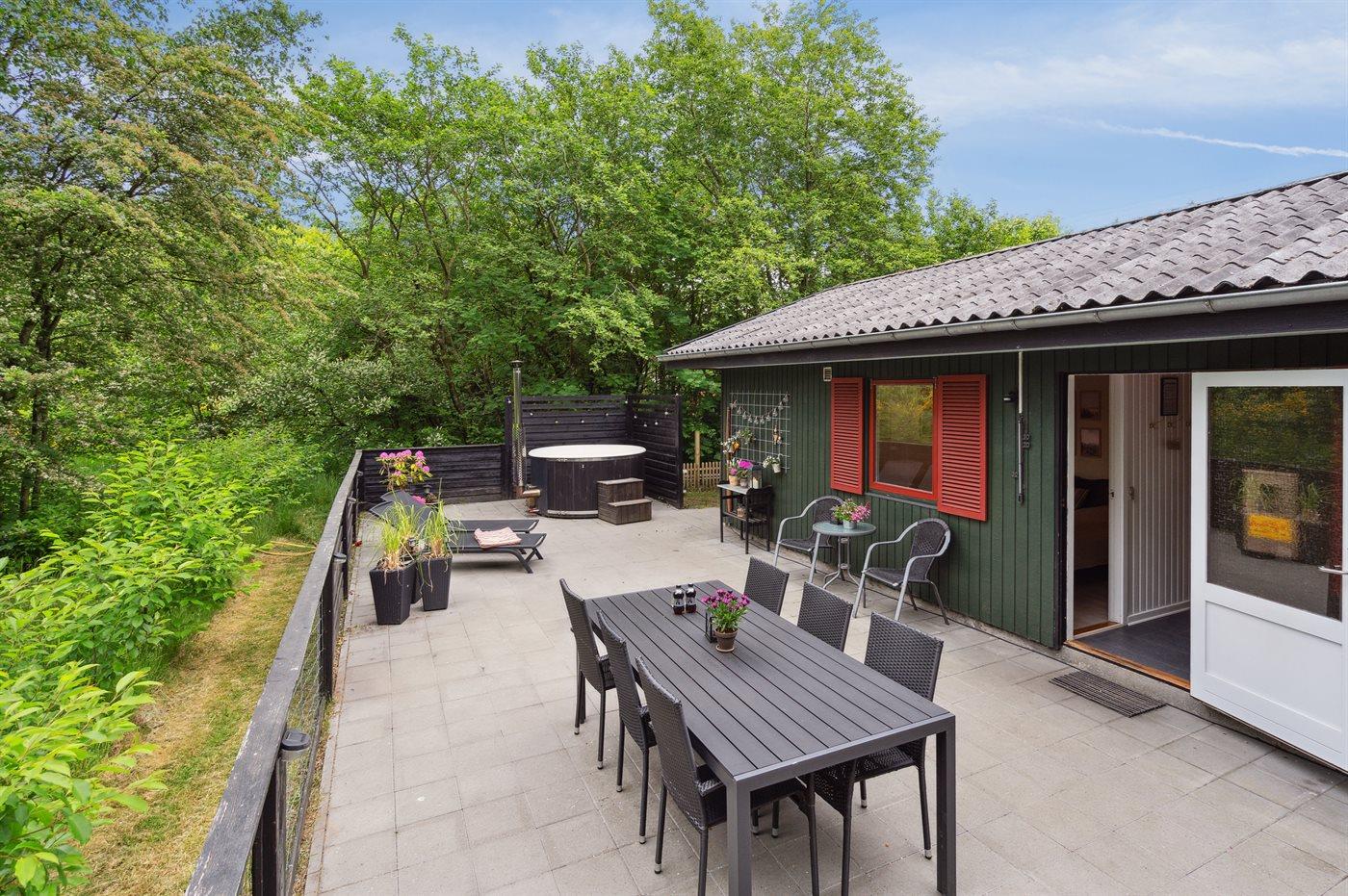 Hyggeligt sommerhus i Arrild med ugeneret terrasse og udendørs vildmarkskar til afslapning.