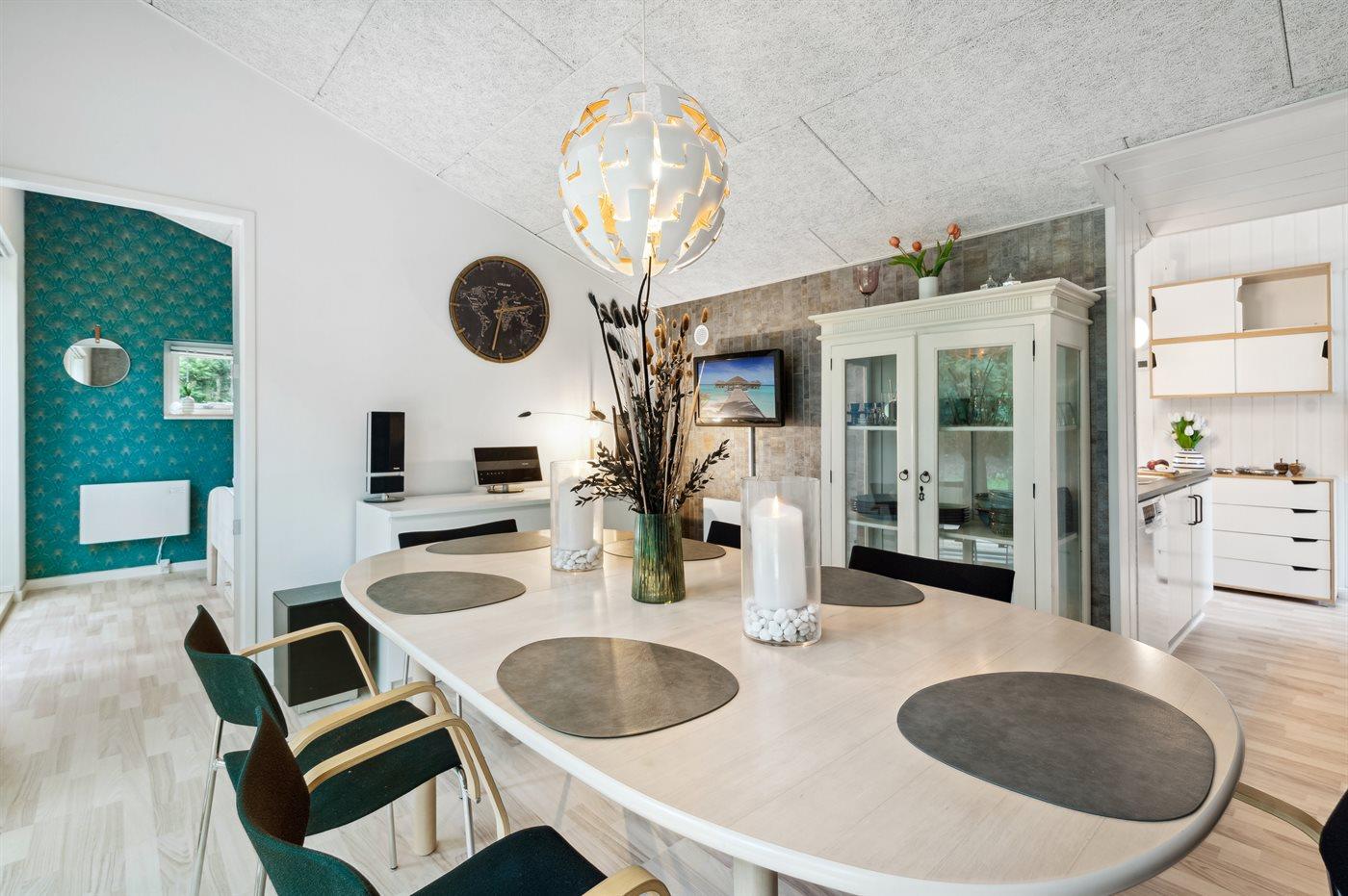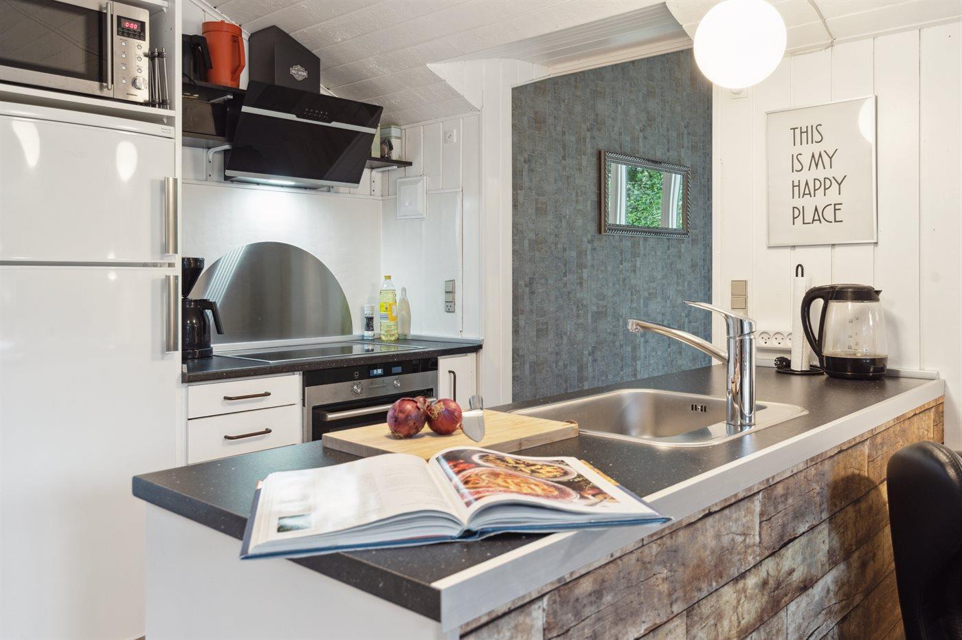Køkkenet er udstyret med 1 køleskab. Der er 4 induktionskogeplader, varmluftovn, mikrobølgeovn samt opvaskemaskine.