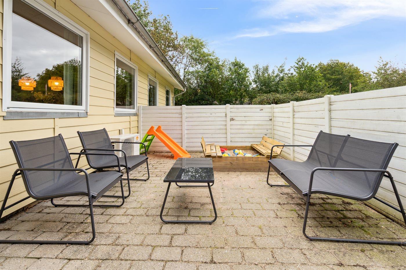 Ferieboligen er beliggende på en 850 m² stor naturgrund. Der er 30000 m til havet. Der er 20000 m til Vadehavet. Der er en sø i en afstand af 200 m. Nærmeste forretning er beliggende i en afstand af 900 m. Til ferieboligen hører åbent terrasseareal. Desuden er der overdækket terrasse. Sandkasse. Trampolin. Der ligger en legeplads i en afstand af 500 m. Grill til rådighed. Parkering ved ferieboligen.