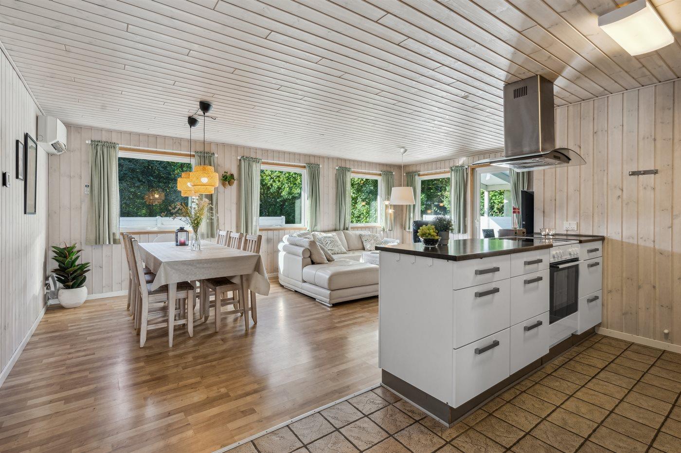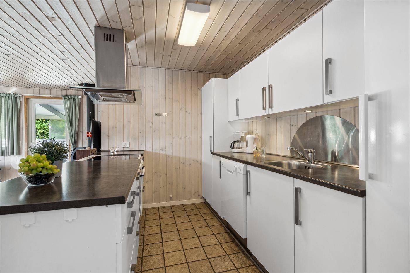 Køkkenet er udstyret med 1 køleskab. Der er 4 keramiske kogeplader, varmluftovn samt opvaskemaskine.