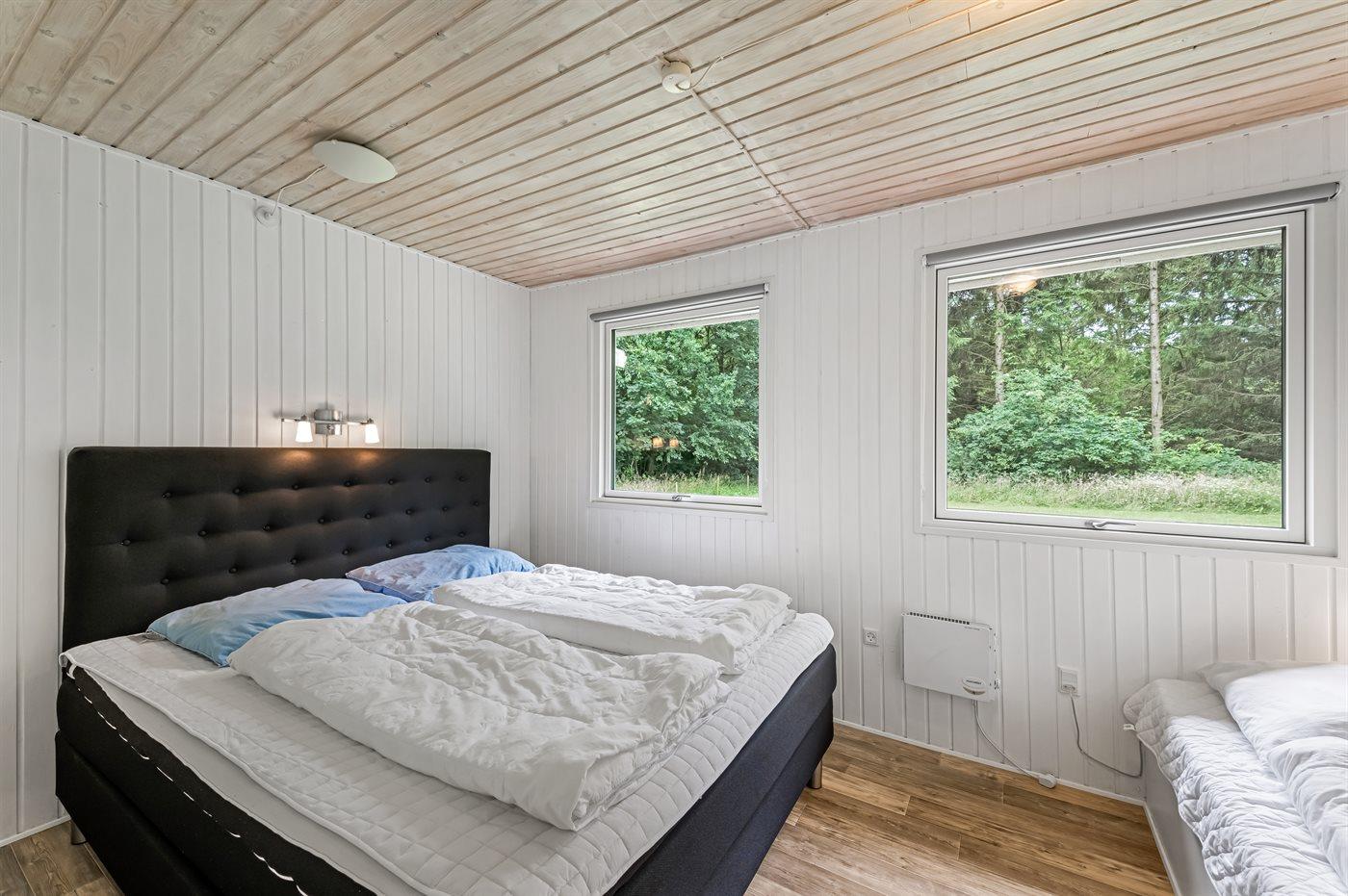 Huset er indrettet med køkken- alrum samt 2 soveværelser; 1 med dobbeltseng og 1 med dobbeltseng og enkeltseng.