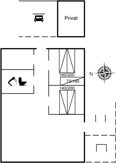 Der er i alt 2 soveværelser. Sovepladserne fordeler sig på: 4 sovepladser i dobbeltsenge. 1 soveplads i enkeltseng. Derudover er der 1 stk. barneseng.