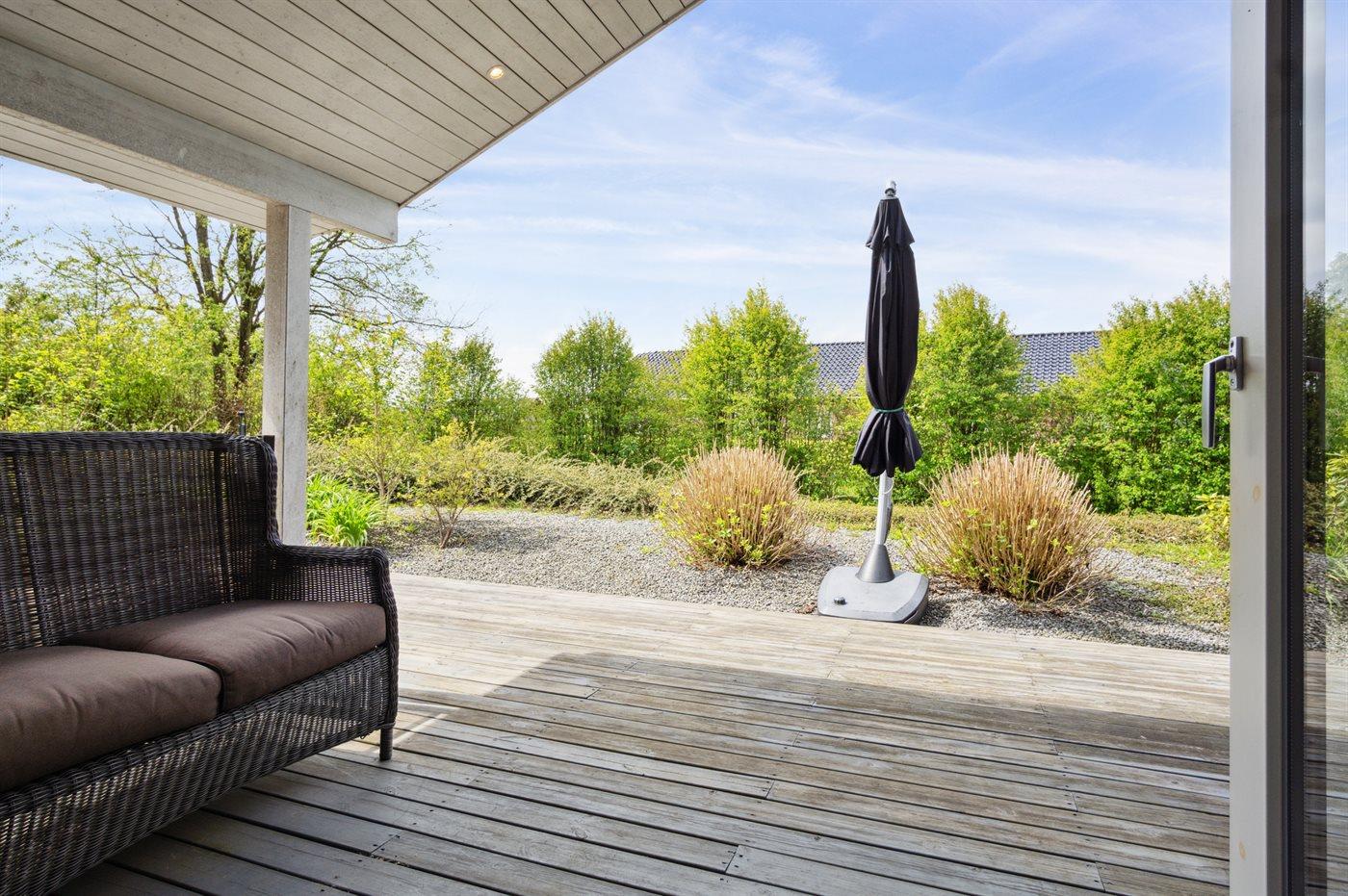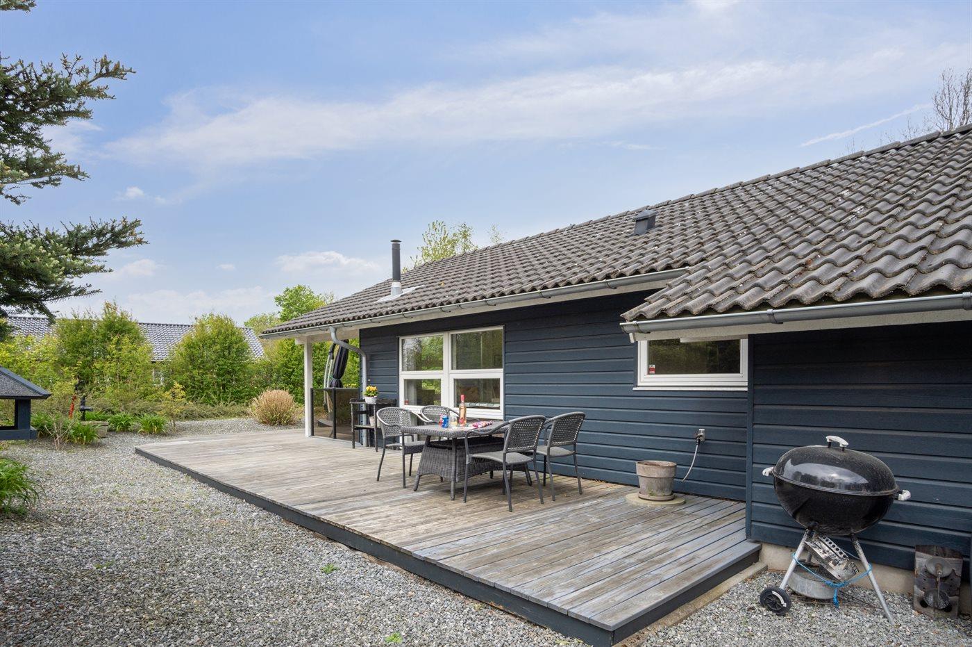 Der er gode muligheder for dejlige timer i det fri på den store, delvist overdækkede terrasse med grill, havemøbler og 2 solsenge. På den store plæne er der desuden god plads til boldspil og leg.