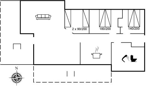 Der er i alt 3 soveværelser. Sovepladserne fordeler sig på: 4 sovepladser i dobbeltsenge. 2 sovepladser i enkeltsenge.