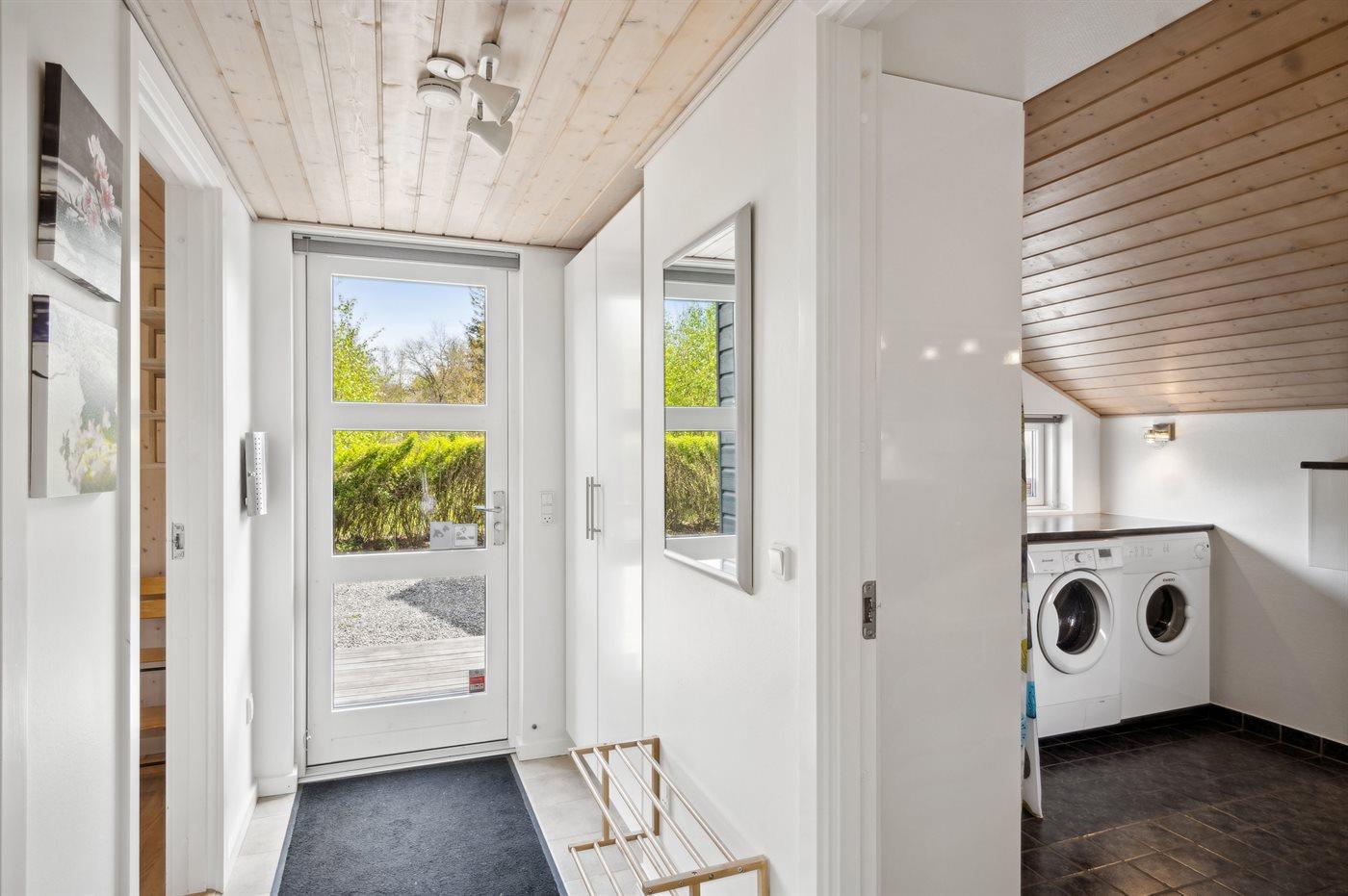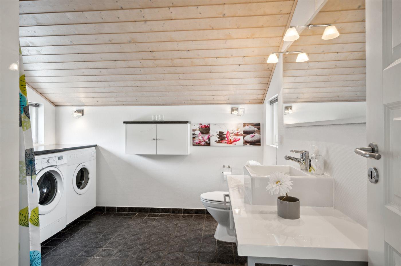 Sommerhuset er velholdt og godt indrettet med en lys og hyggelig opholdsstue med træpilleovn og udgang til terrassen, stort køkken/alrum med lofter til kip, tre gode soveværelser og en hems samt et stort badeværelse med gulvvarme og bruseniche.
