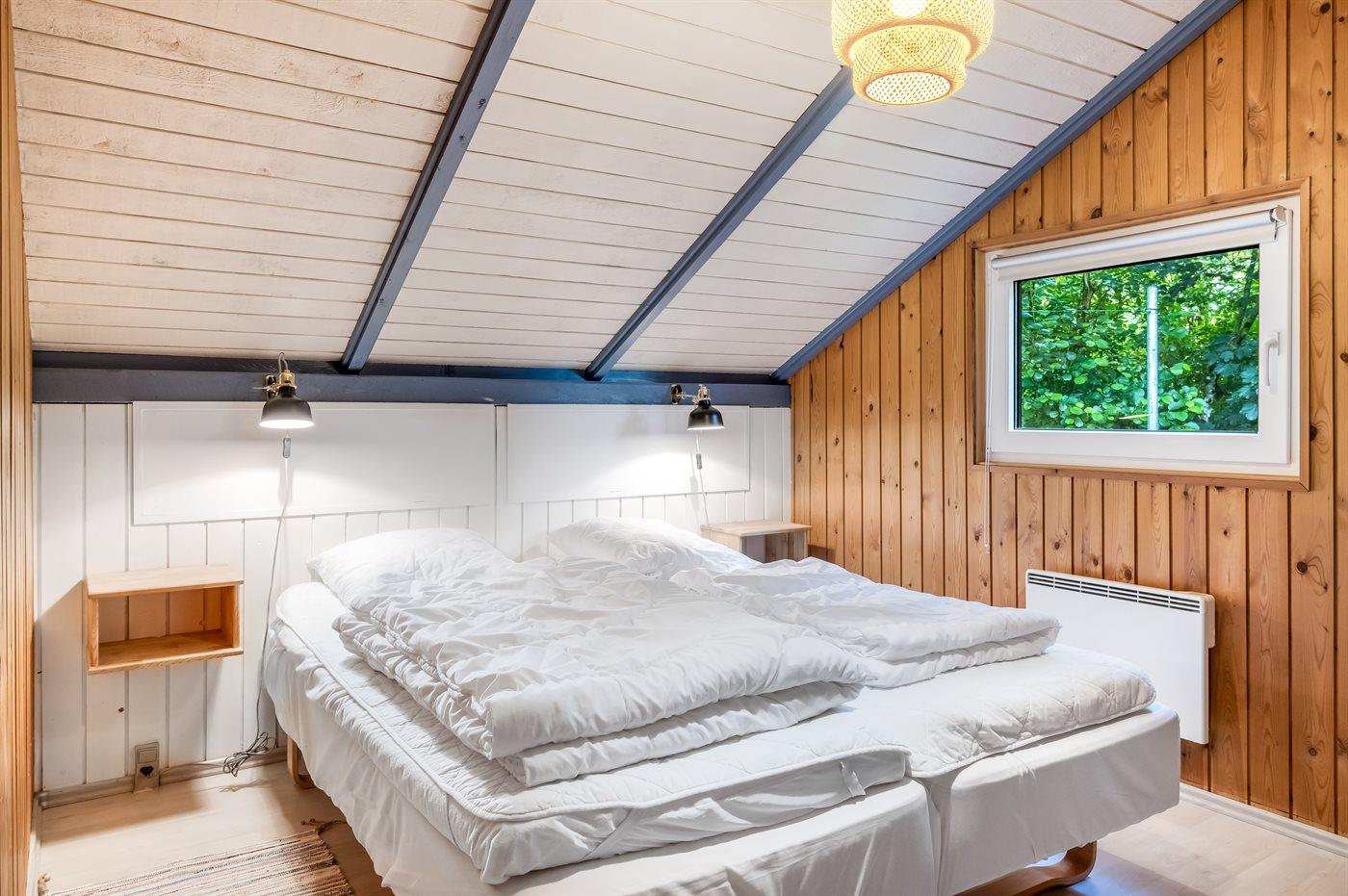 Der er i alt 2 soveværelser. Sovepladserne fordeler sig på: 4 sovepladser i dobbeltsenge. 2 sovepladser i sovesofa (dobbelt). 2 af disse sovepladser befinder sig i stuen. Derudover er der 1 stk. barneseng.